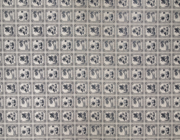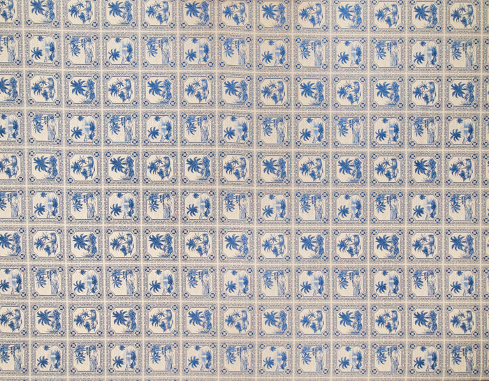 100% Cotton Poplin, 44/45"Wide, One-Way. Bandana Print Beach and Palm Tree Scenics.