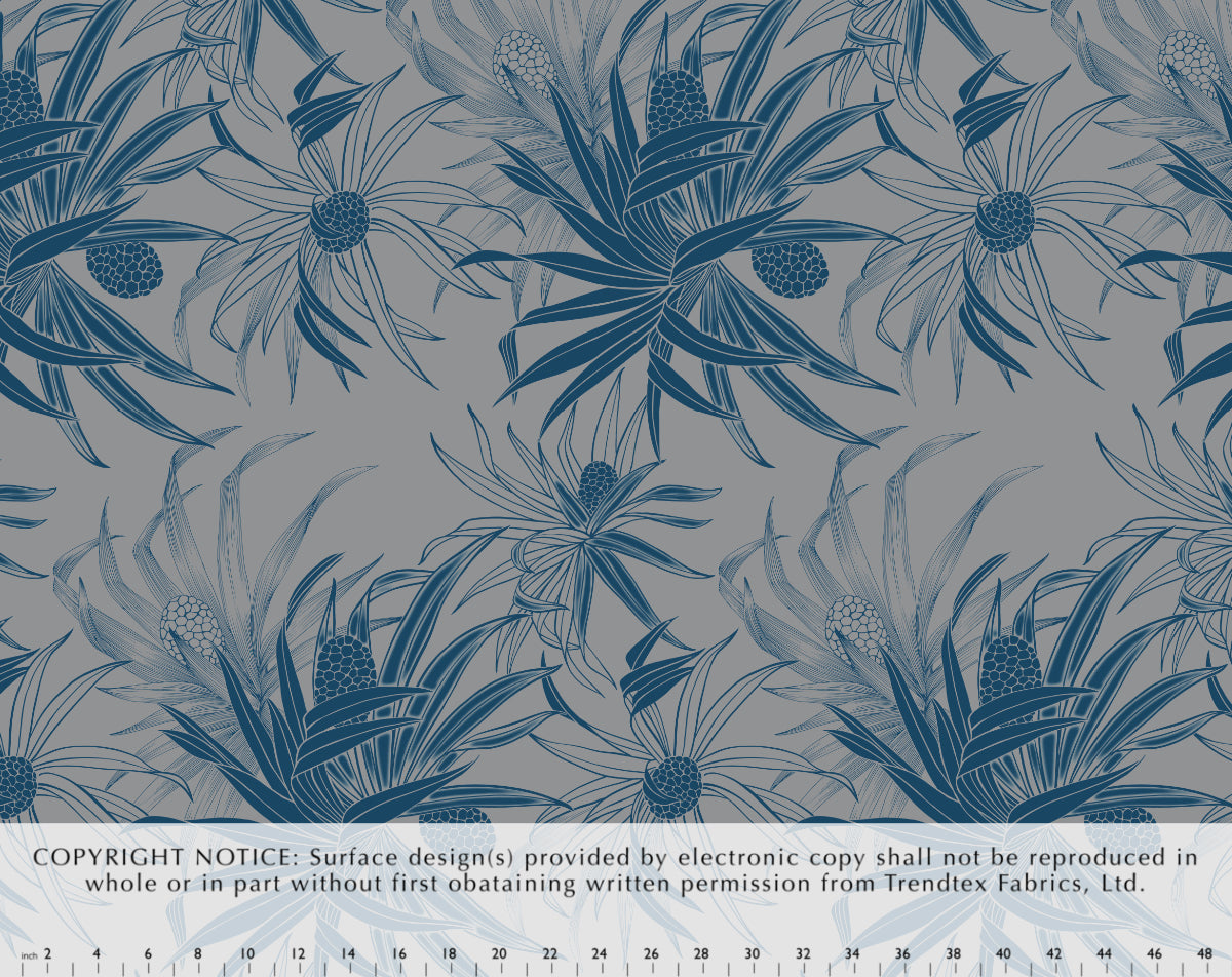95% Polyester/5% Spandex Knit, 58” Wide, All-Over. Stylized Tropical 'Ulu (Breadfruit) and Leaves.
