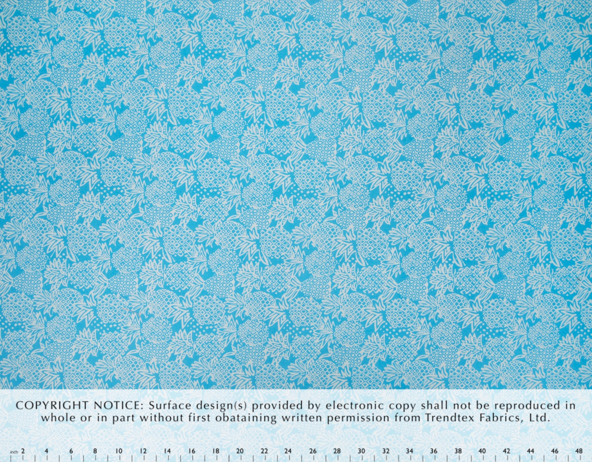 100% Cotton Poplin, 44/45"Wide, One-Way. Stylized Tropical Pineapples (Medium).
