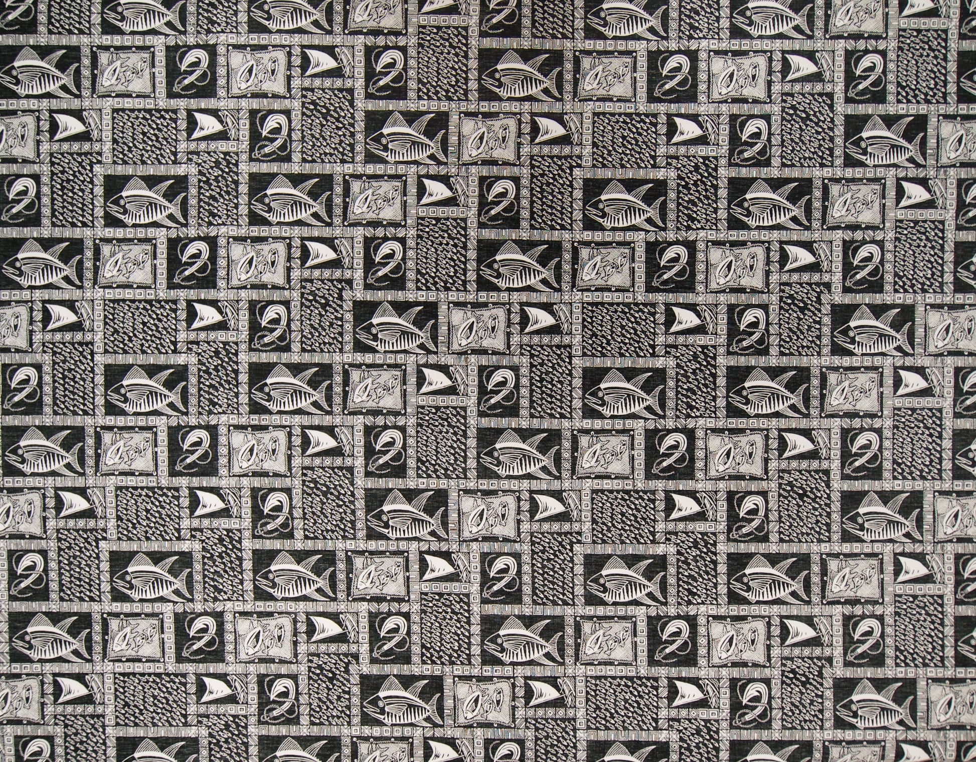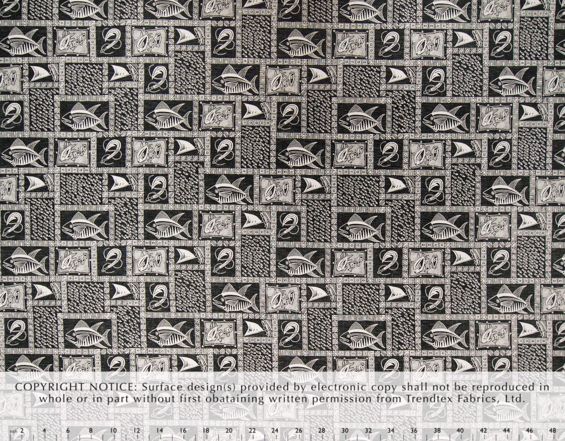 100% Cotton Poplin, 44/45"Wide, All-Over. Reverse Fabric Style Design with Stylized Border and Fishing Motifs.