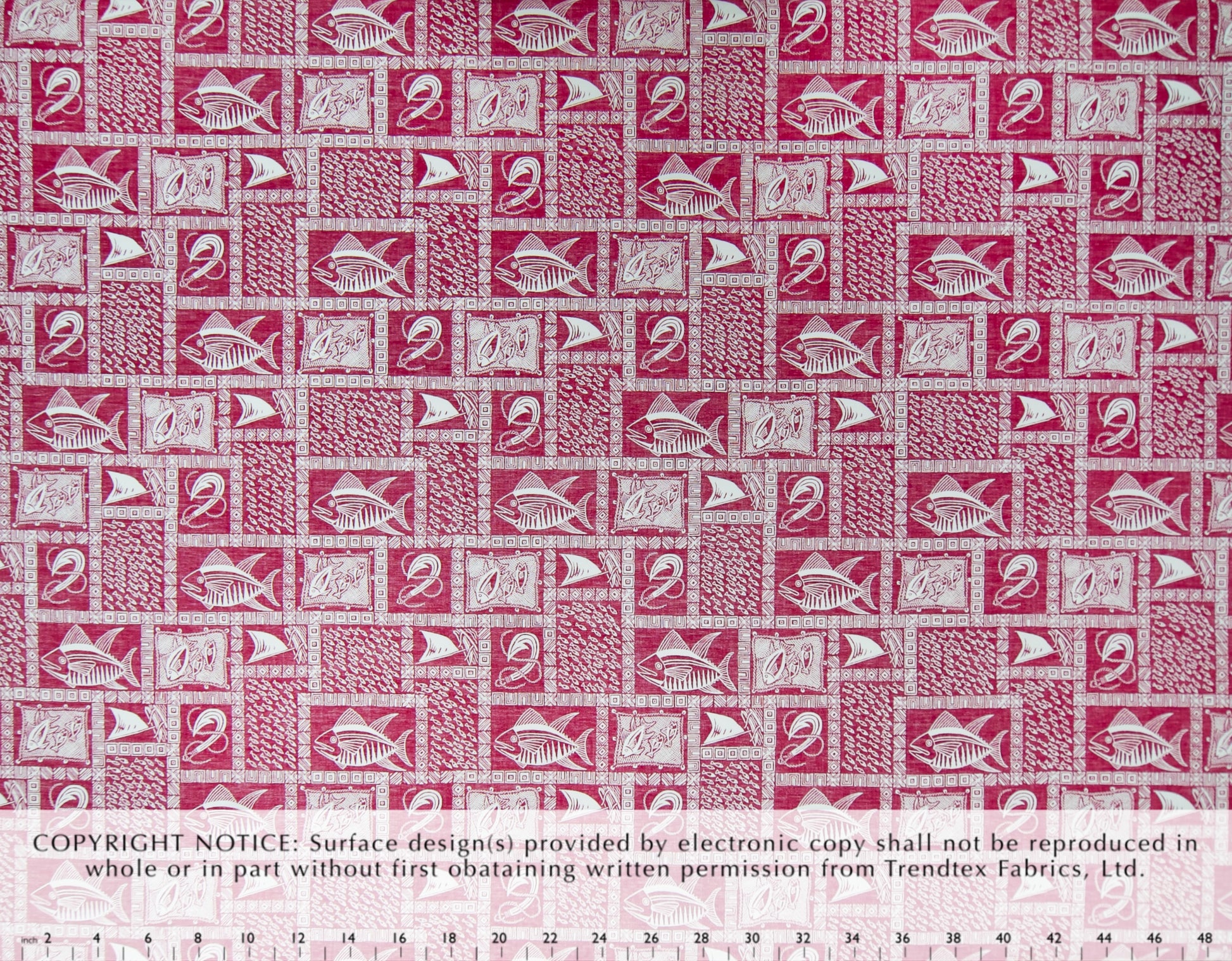 100% Cotton Poplin, 44/45"Wide, All-Over. Reverse Fabric Style Design with Stylized Border and Fishing Motifs.