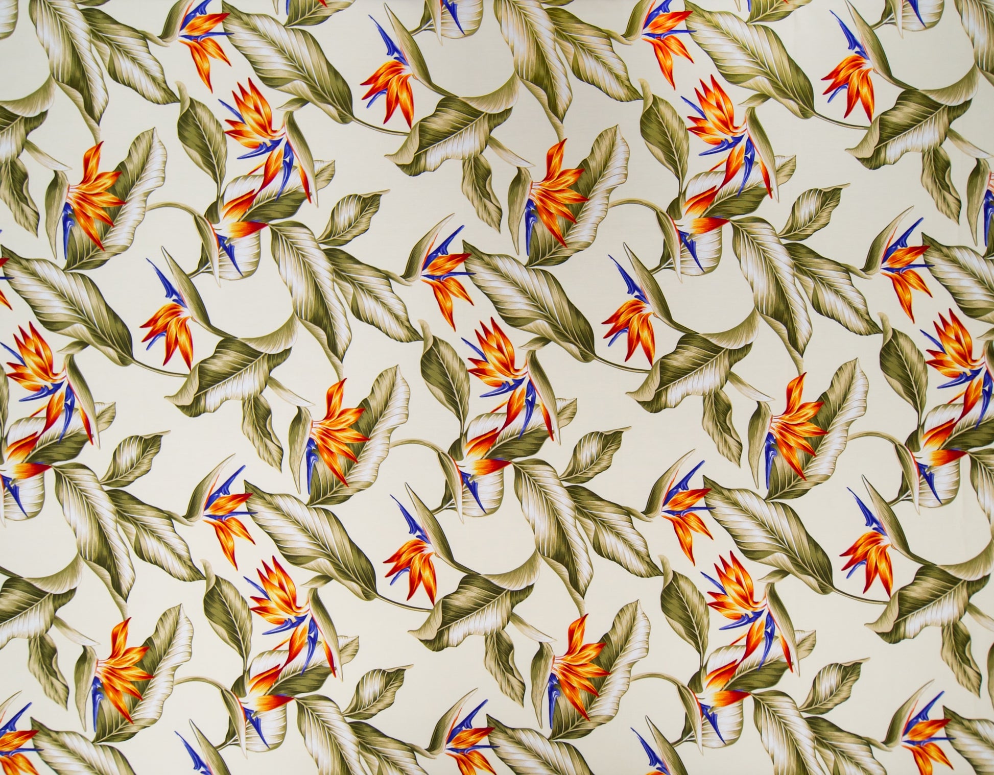 100% Cotton Poplin, 44/45" Wide, All-Over. Realistic bird of paradise flowers and leaves.