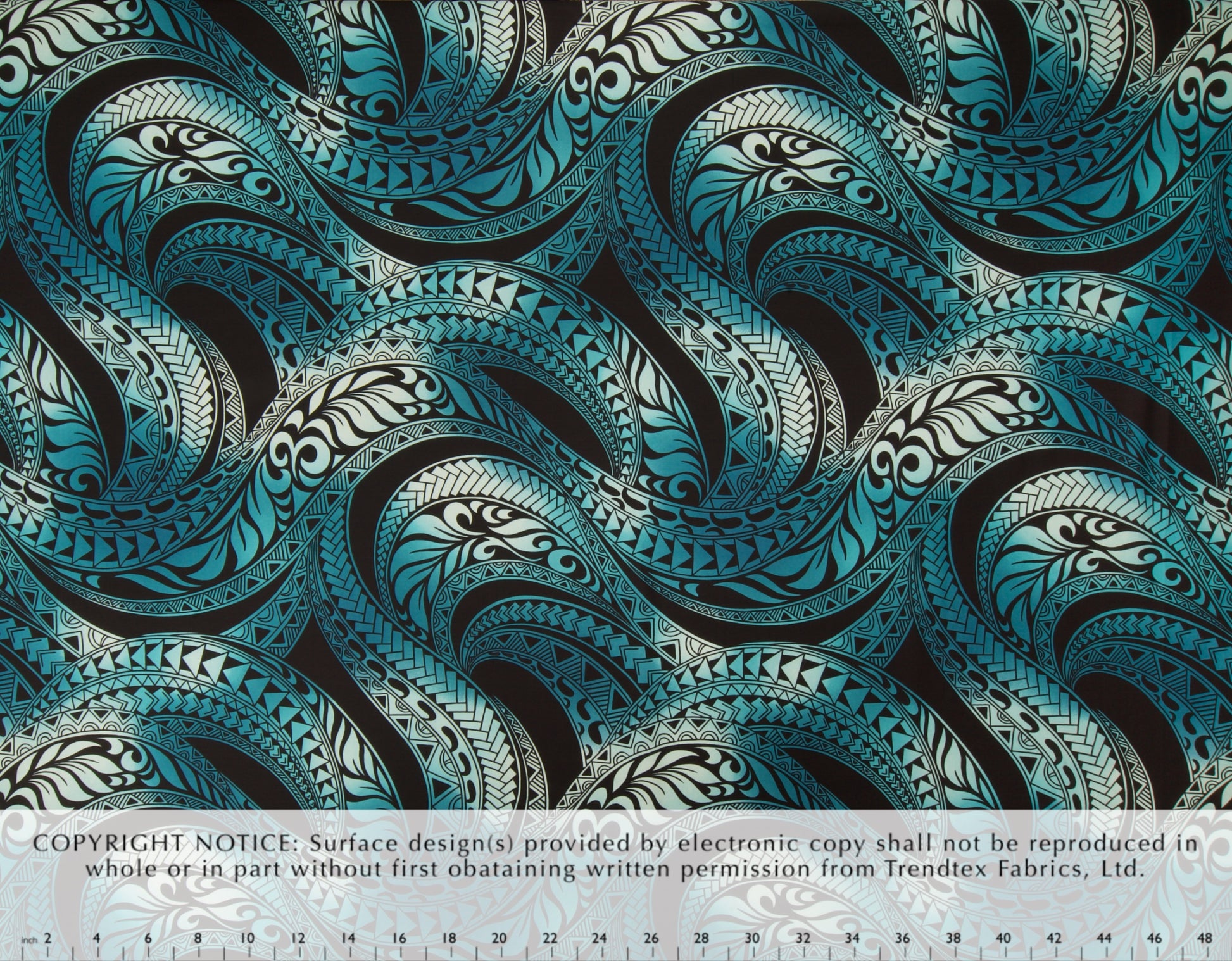 100% Cotton Poplin, 44/45"Wide, All-Over. Polynesian Tapa/Tribal Patterns.