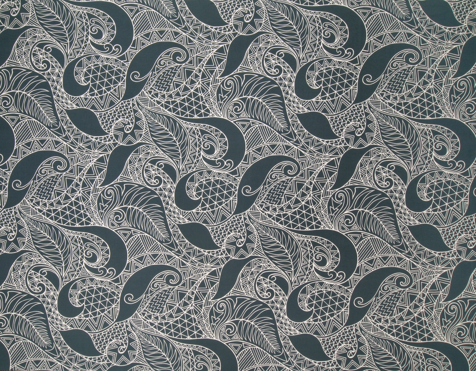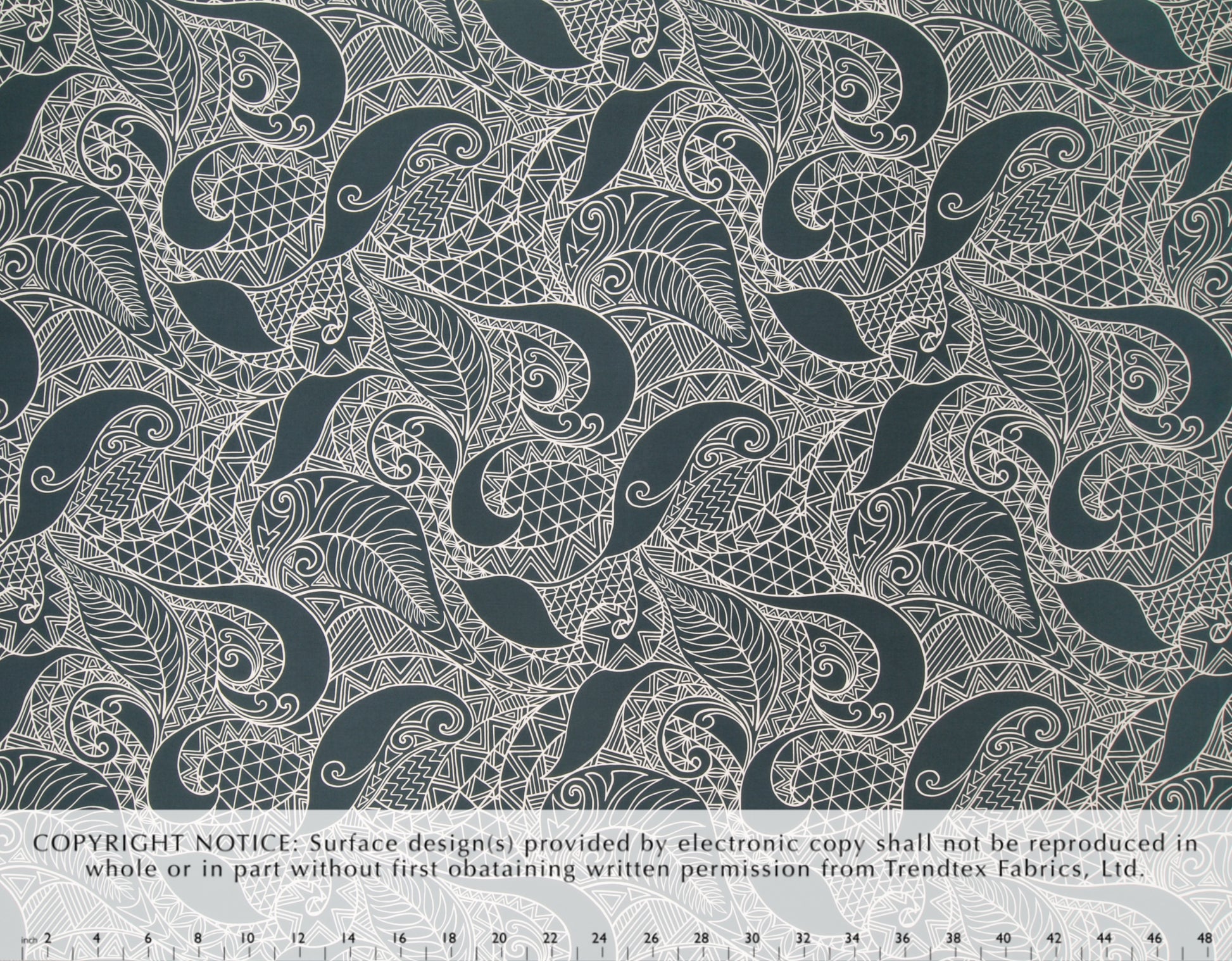 100% Cotton Poplin, 44/45"Wide, All-Over. Abstract Tribal Designs with Leaf Motifs.