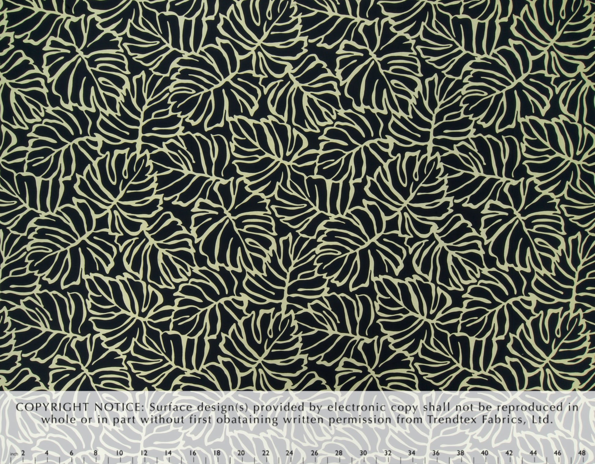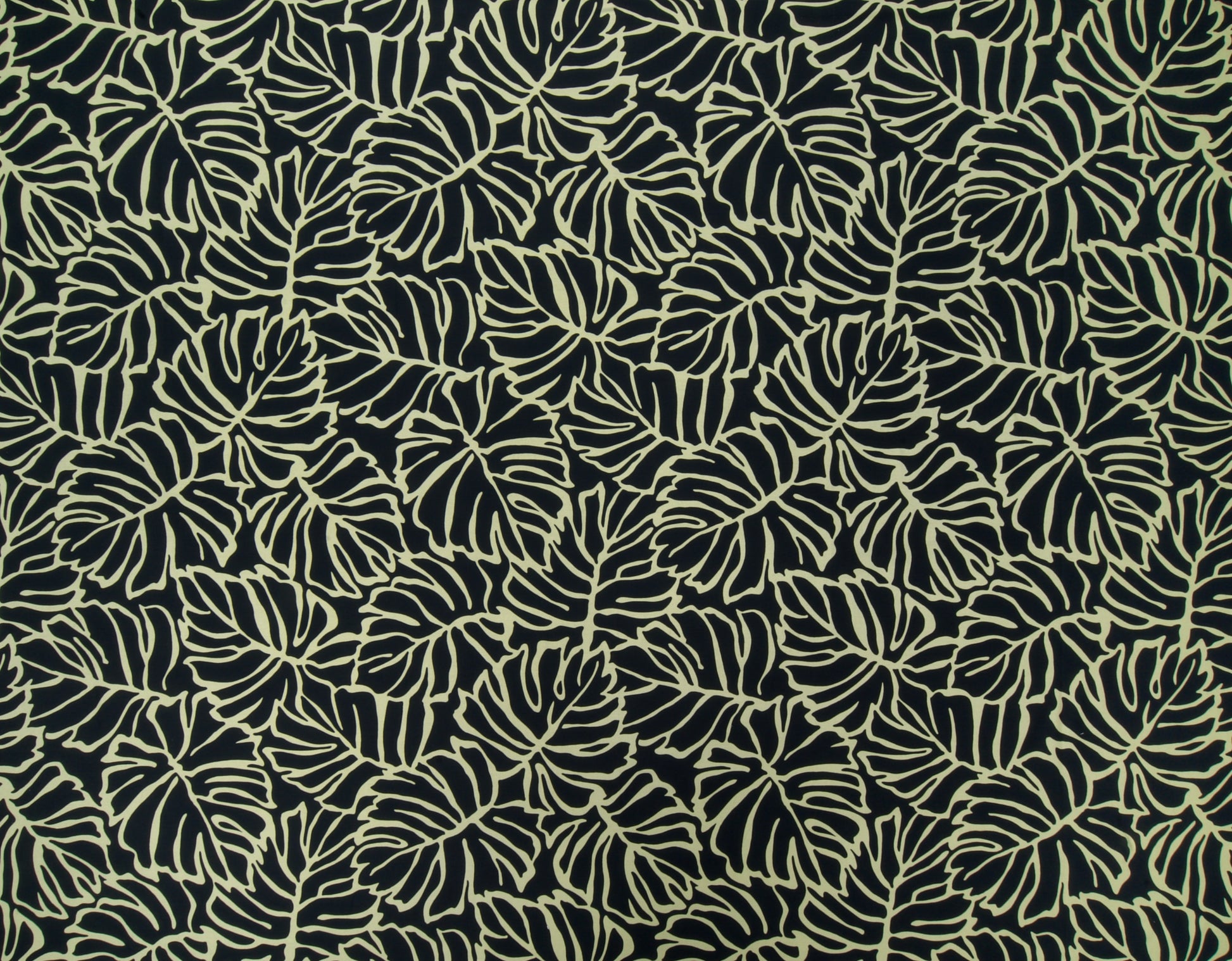 100% Cotton Poplin, 44/45"Wide, All-Over. Stylized Linework Tropical Monstera Leaves.