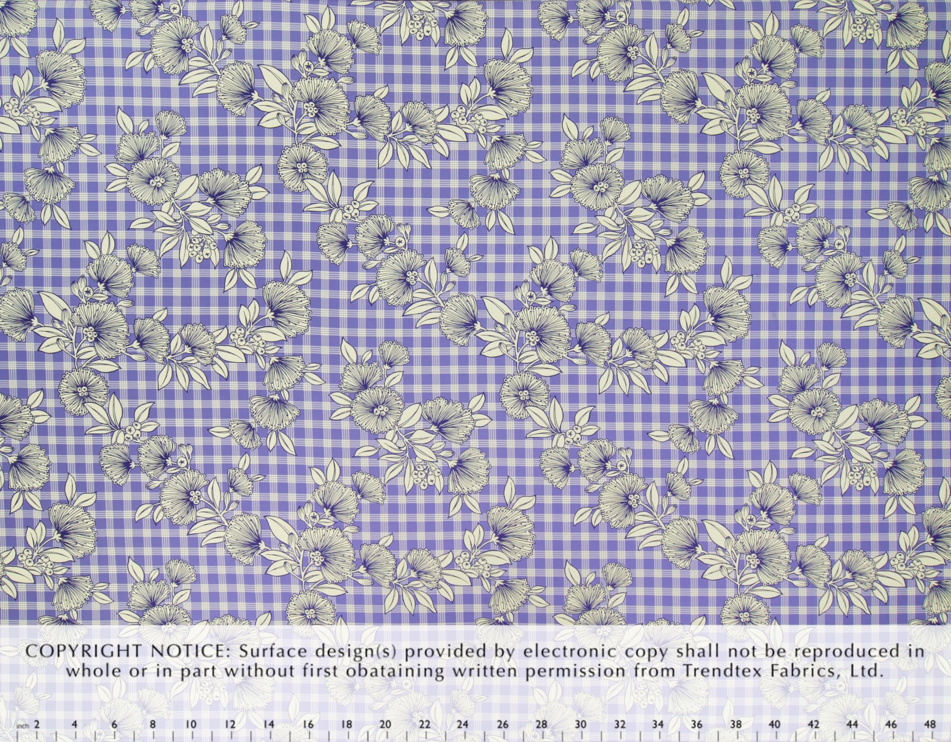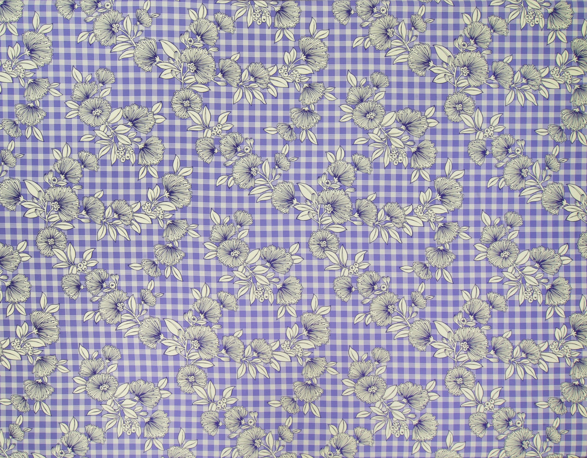 100% Cotton Poplin, 44/45"Wide, All-Over. Stylized Artistic Ohia Lehua Flowers on a Background of Palaka.