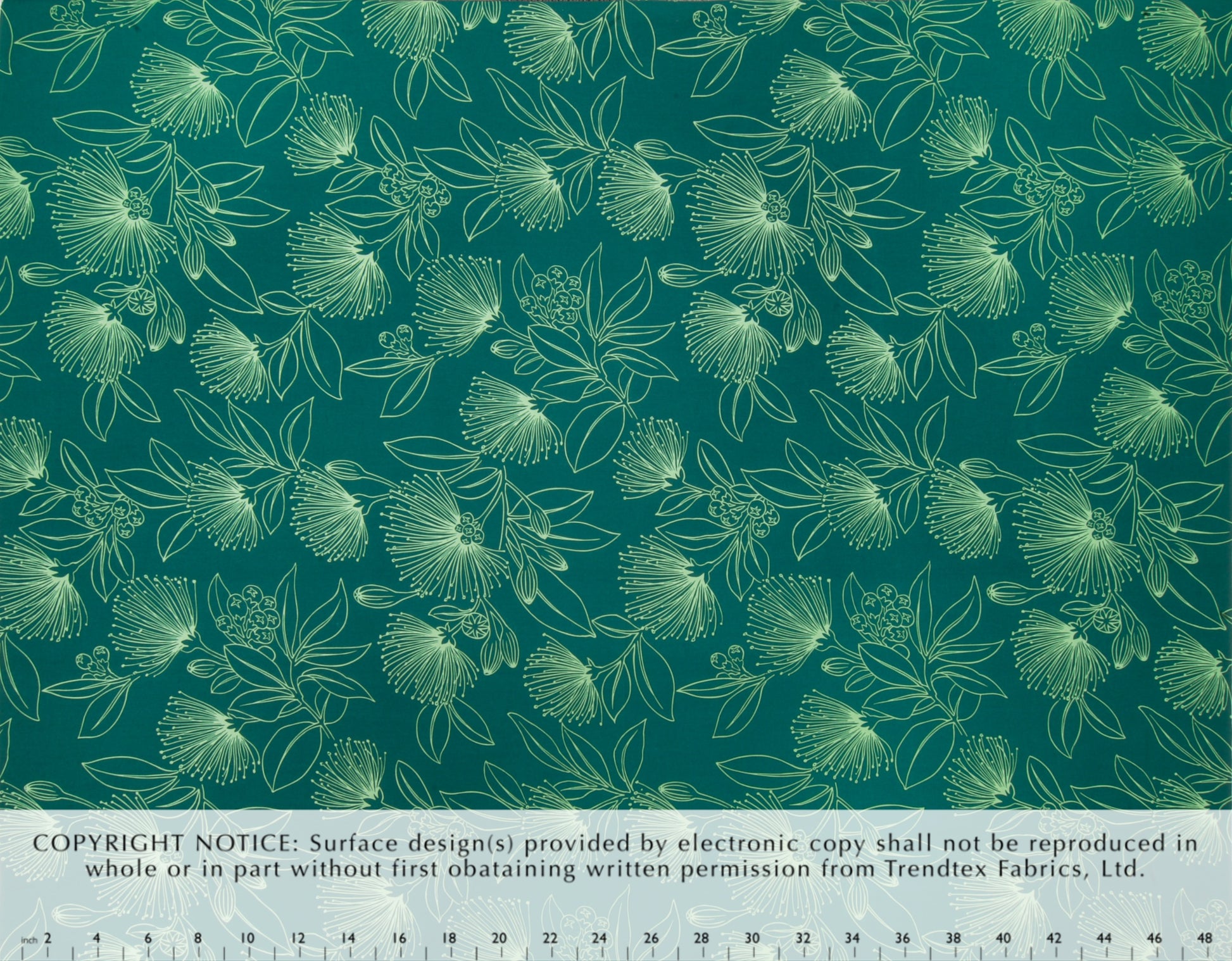 100% Cotton Poplin, 44/45"Wide, One-Way. Stylized Outline Ohia Lehua Blossoms.