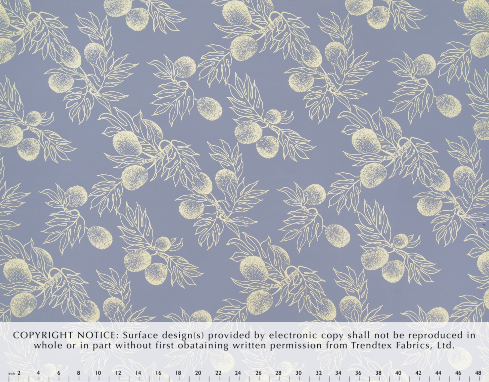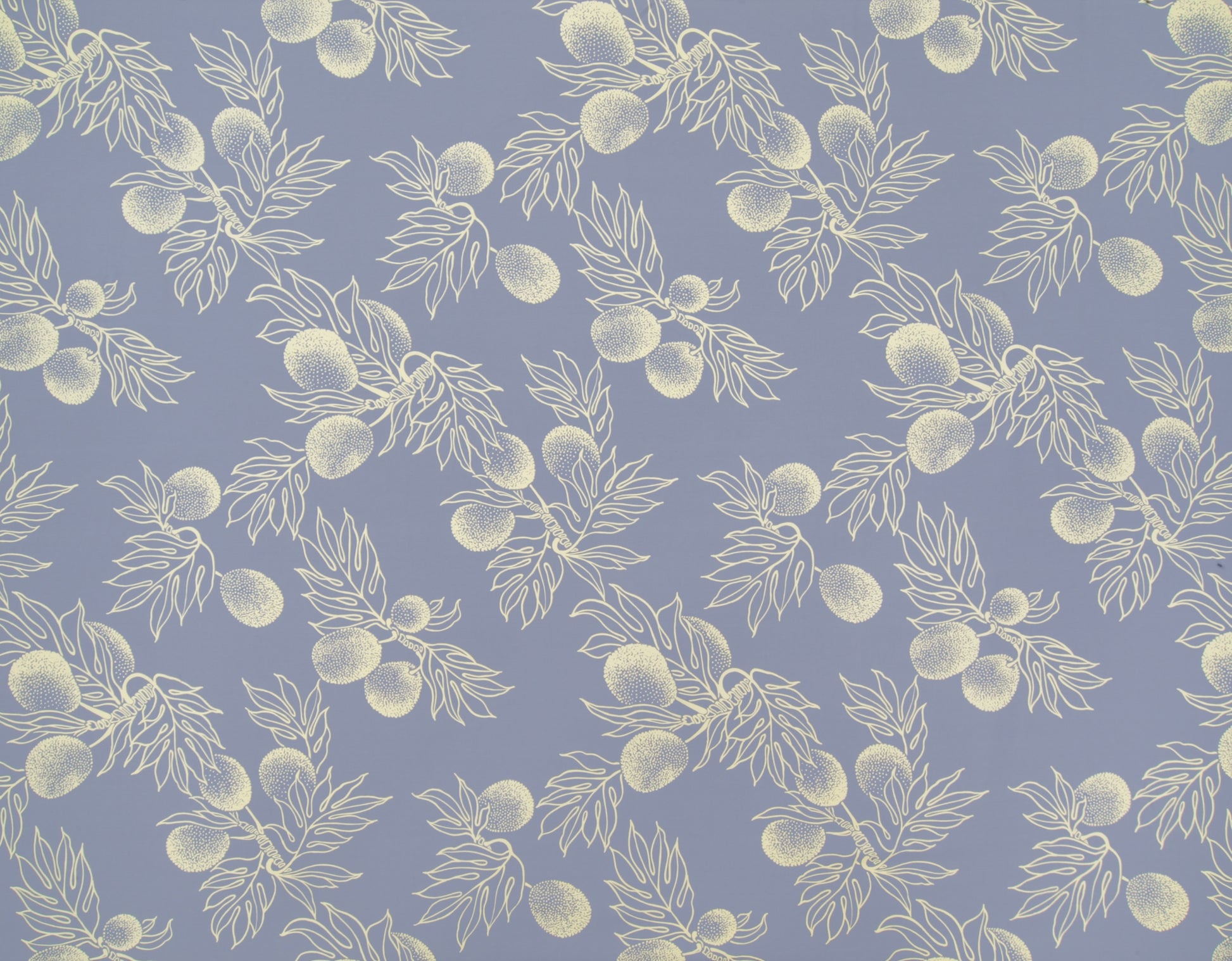 100% Cotton Poplin, 44/45"Wide, All-Over. Stylized Ulu (Breadfruit) on a Solid Background.