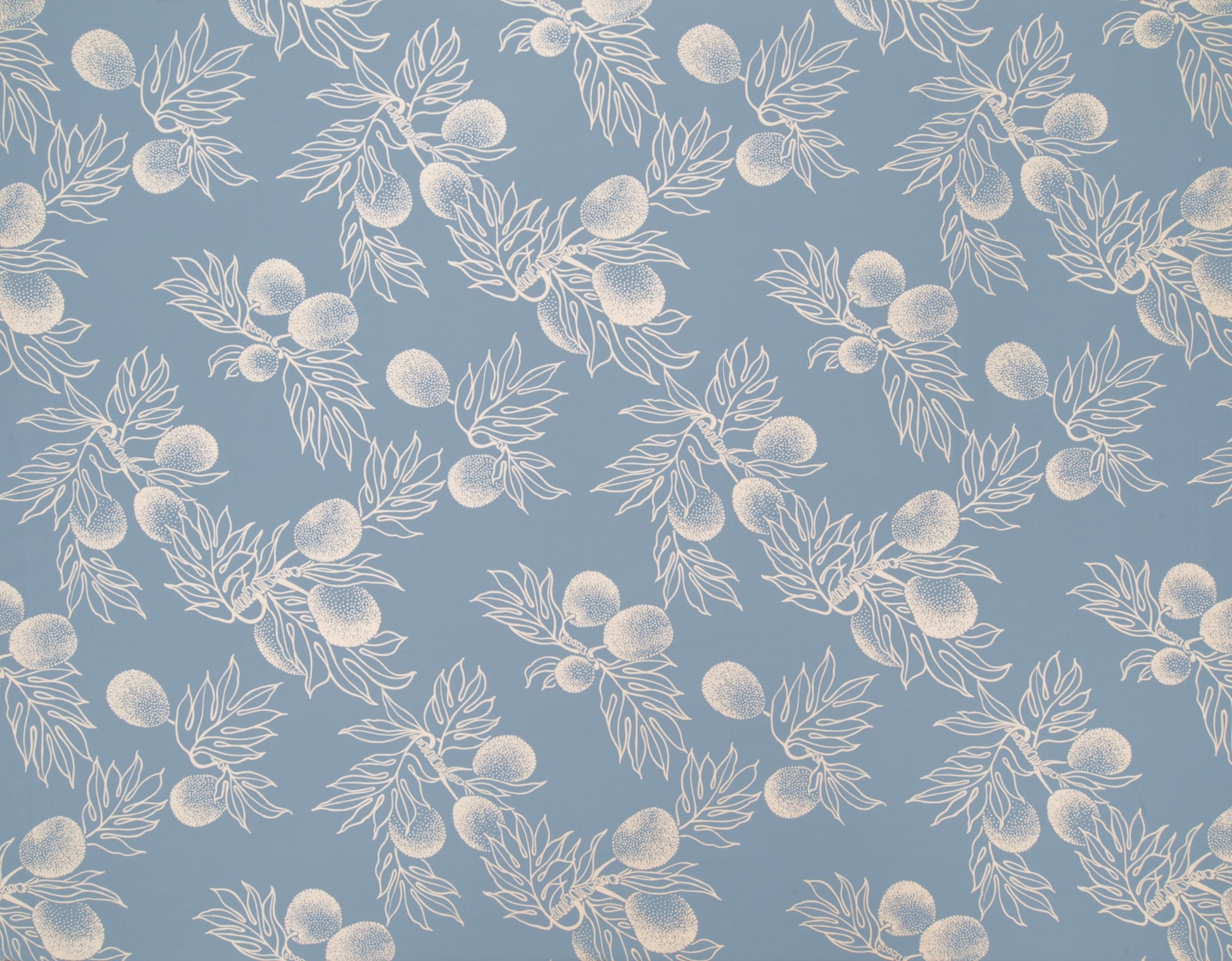100% Cotton Poplin, 44/45"Wide, All-Over. Stylized Ulu (Breadfruit) on a Solid Background.