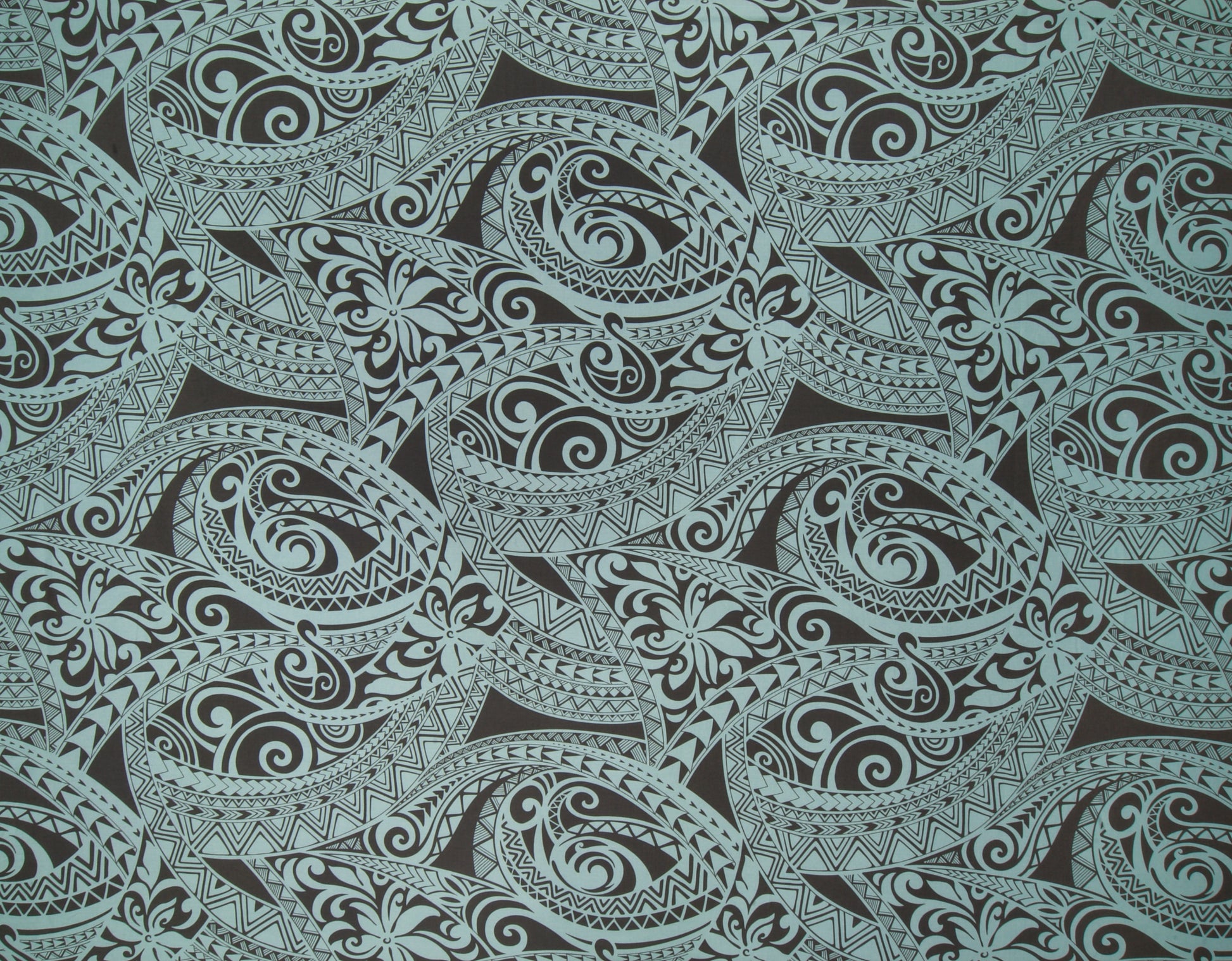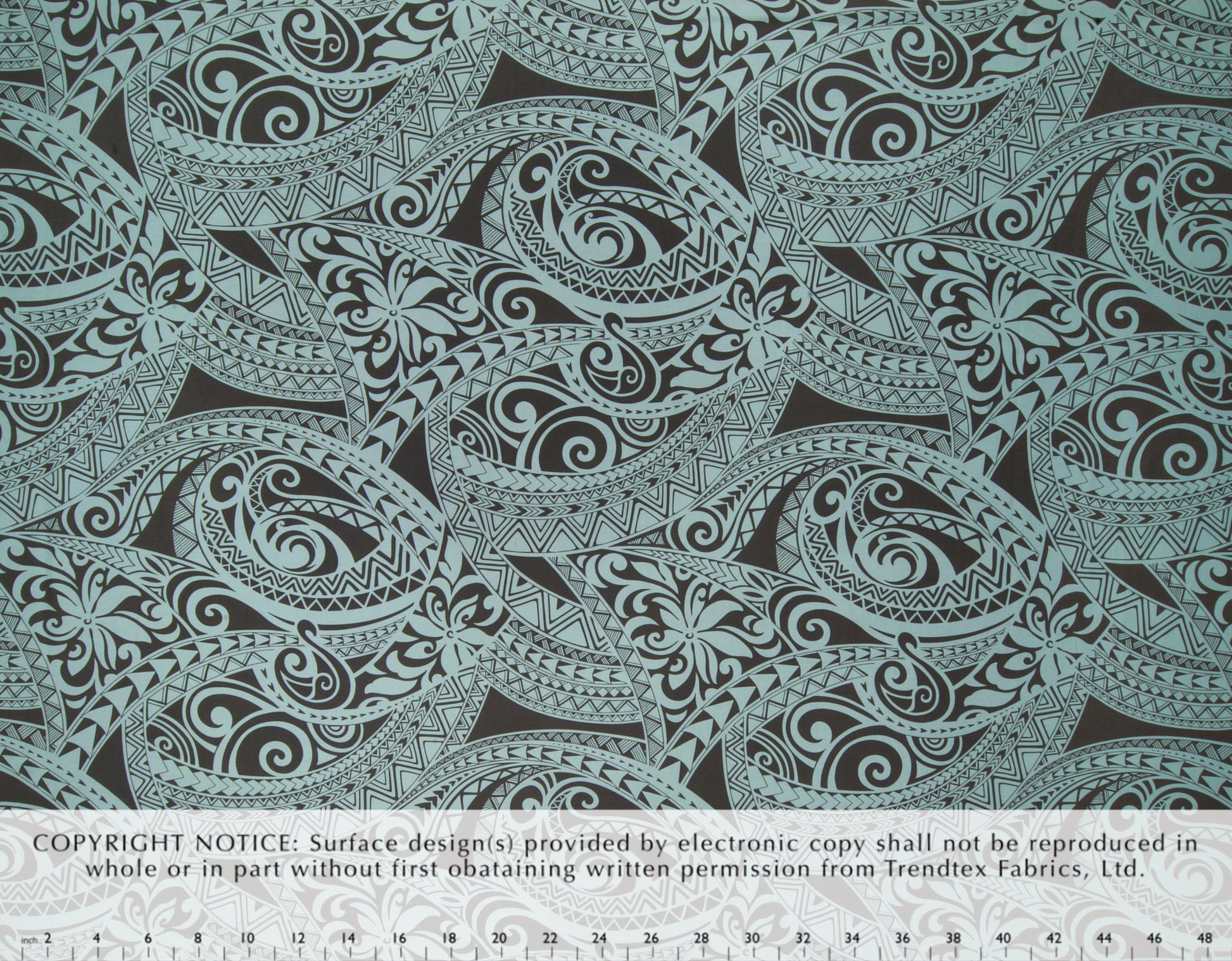 100% Cotton Poplin, 44/45"Wide, All-Over. Stylized Tapa Patterns with Tropical Tiare Flowers.