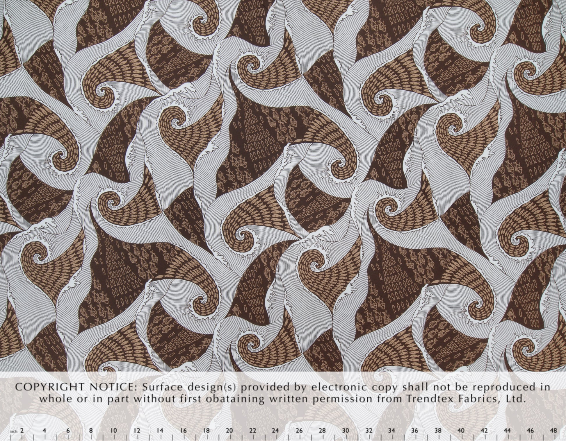 100% Cotton Poplin, 44/45"Wide, All-Over. Stylized Schools of Fish Swimming through the Ocean Waves.