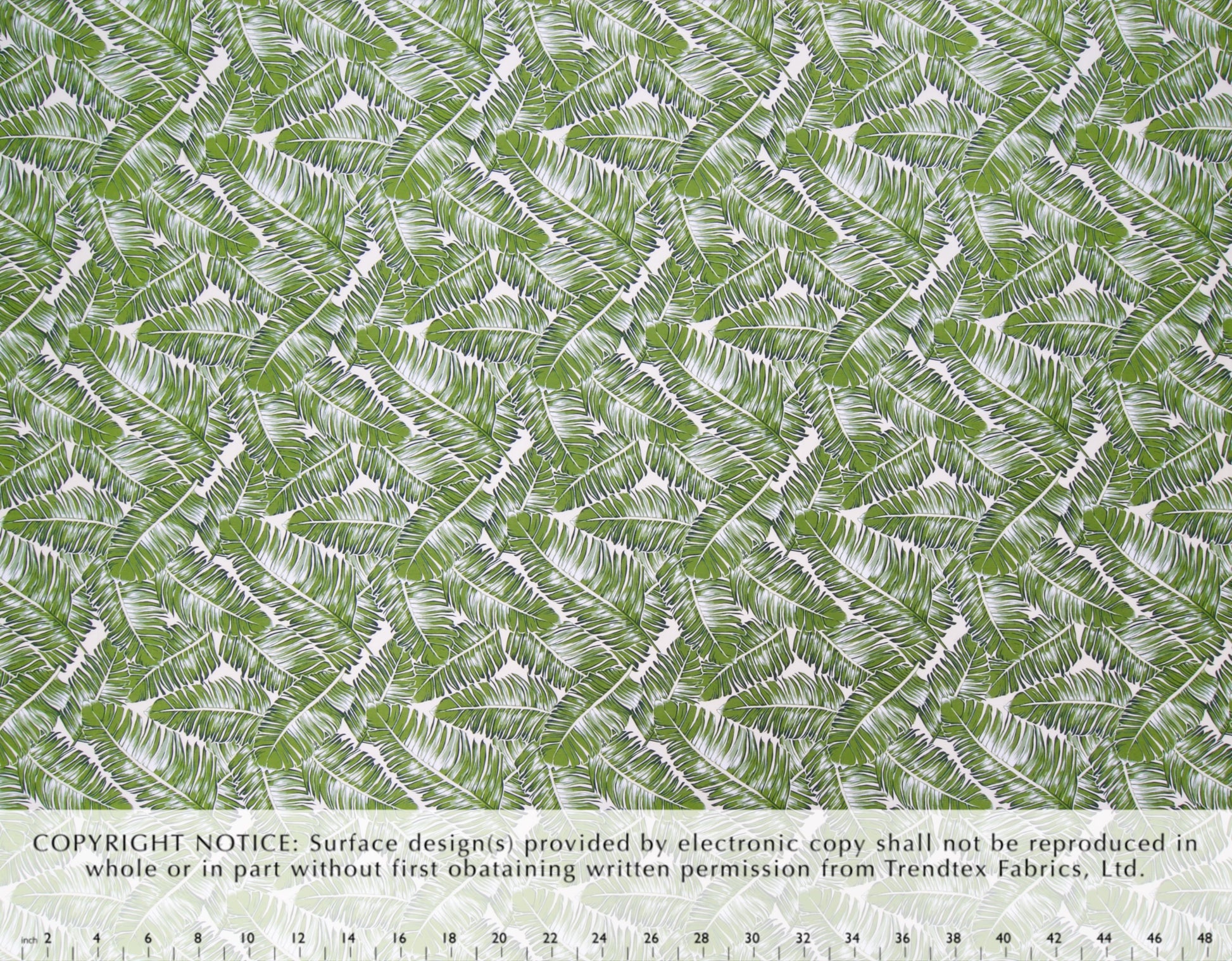 100% Cotton Poplin, 44/45"Wide, All-Over. Stylized Artistic Banana Leaves.