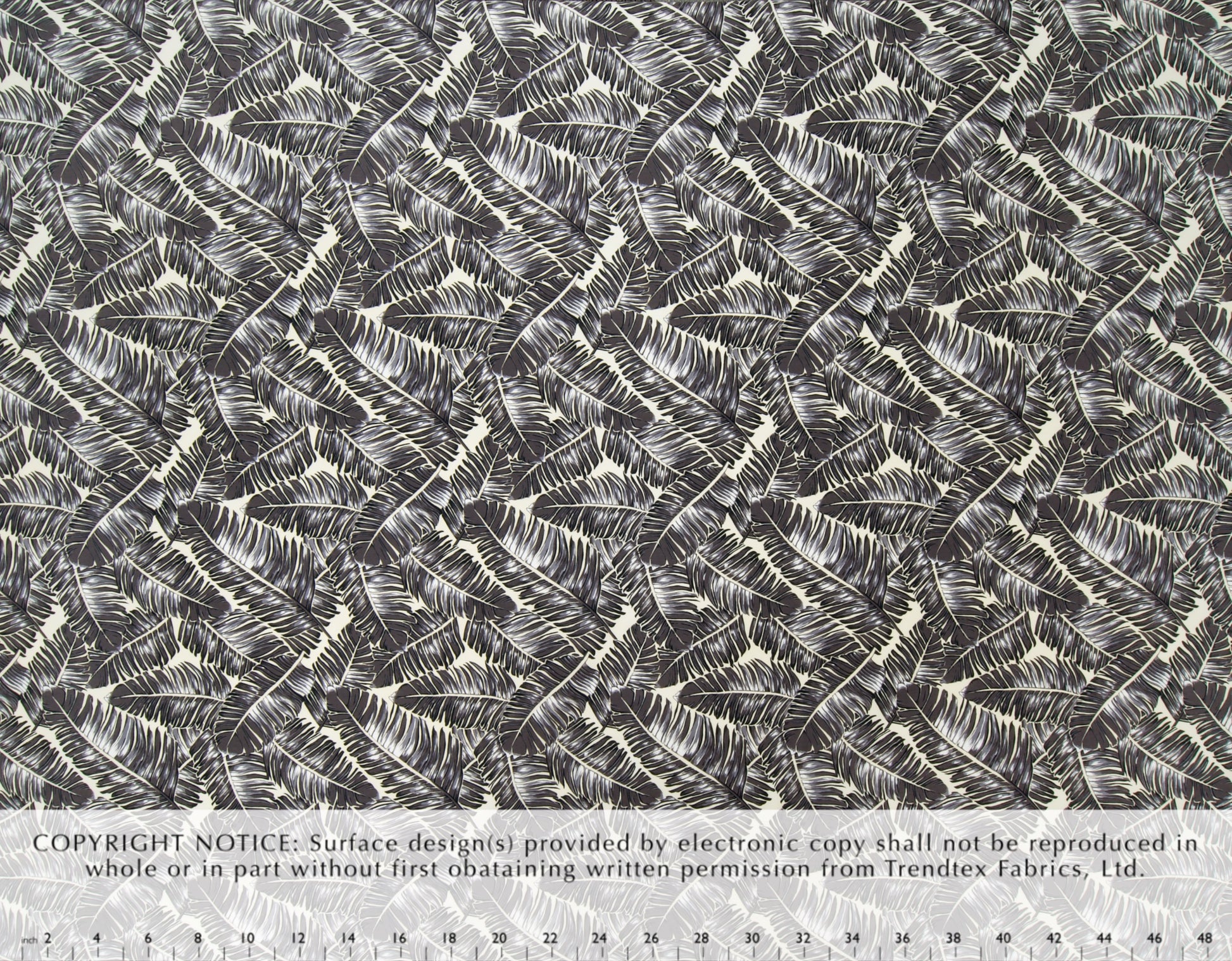 100% Cotton Poplin, 44/45"Wide, All-Over. Stylized Artistic Banana Leaves.