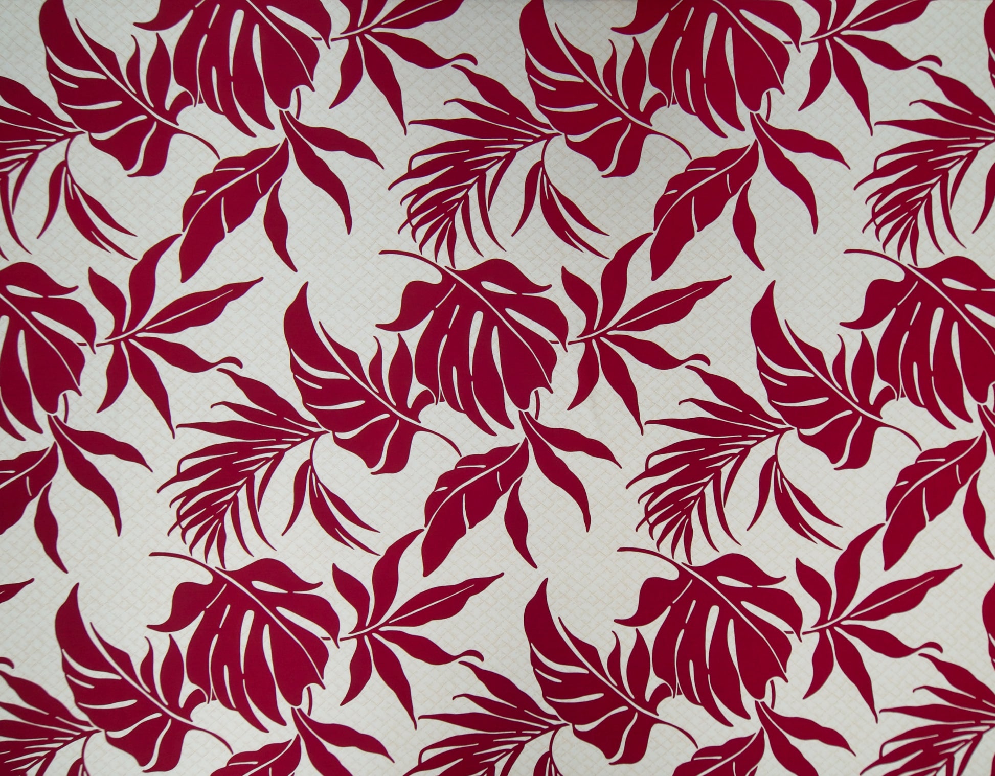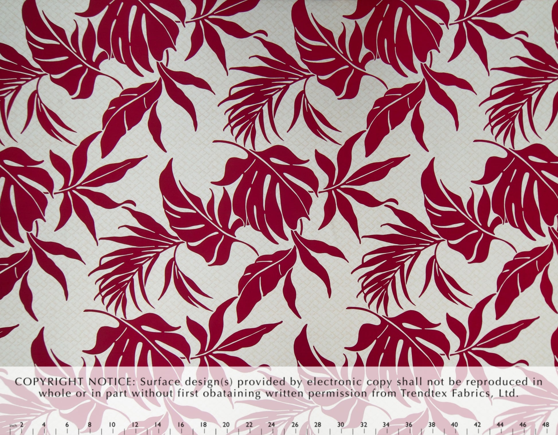 100% Cotton Poplin, 44/45"Wide, All-Over. Stylized Tropical Leaf Silhouettes on a Background of Woven Lauhala.