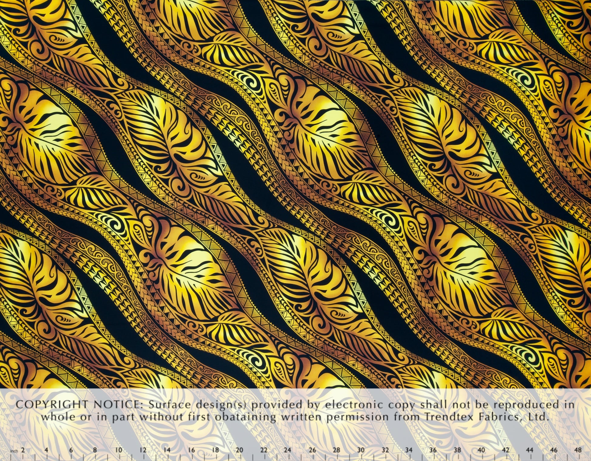 100% Cotton Poplin, 44/45"Wide, All-Over. Diagonal Ombre Tribal Tattoo with Stylized Tropical Leaf.