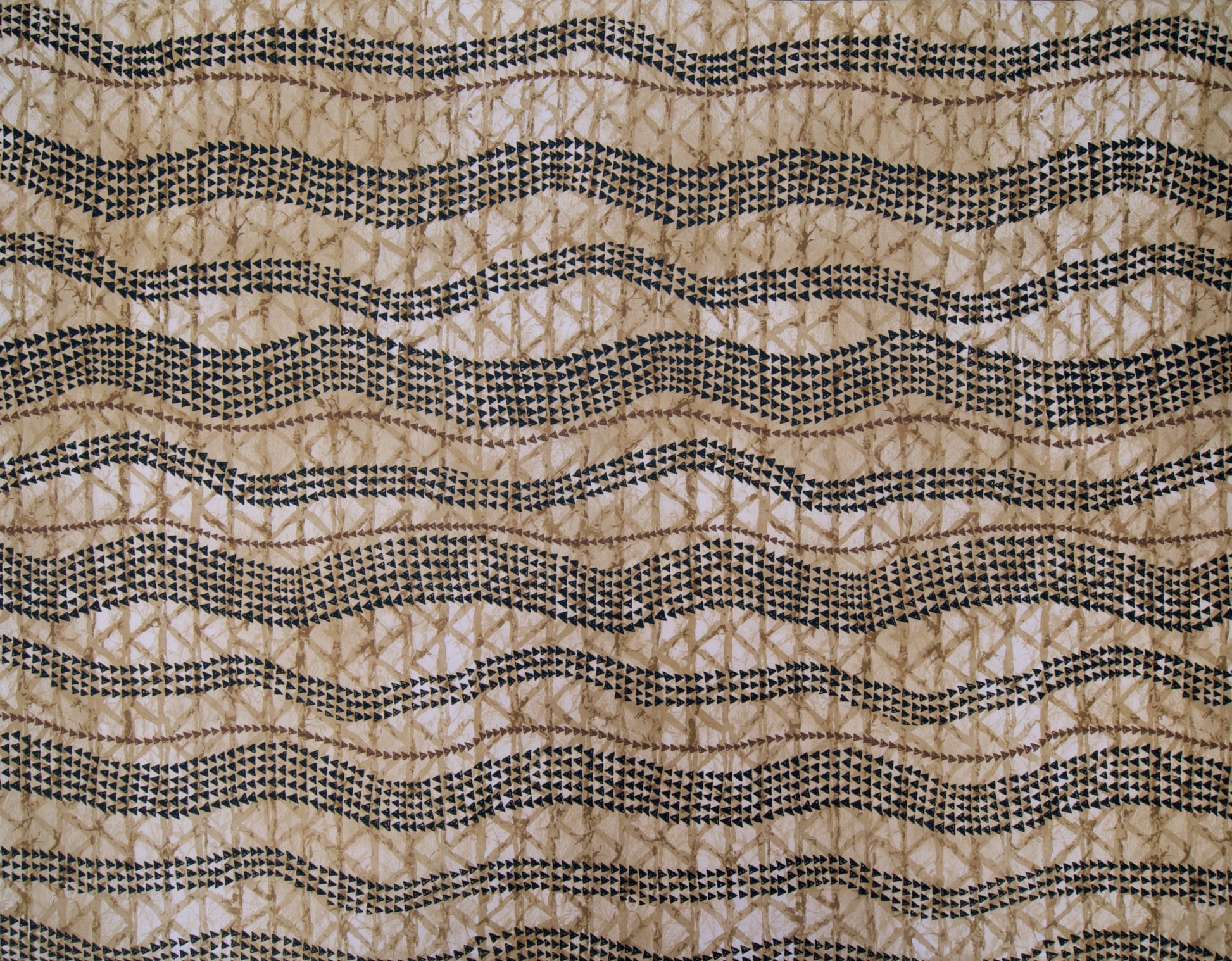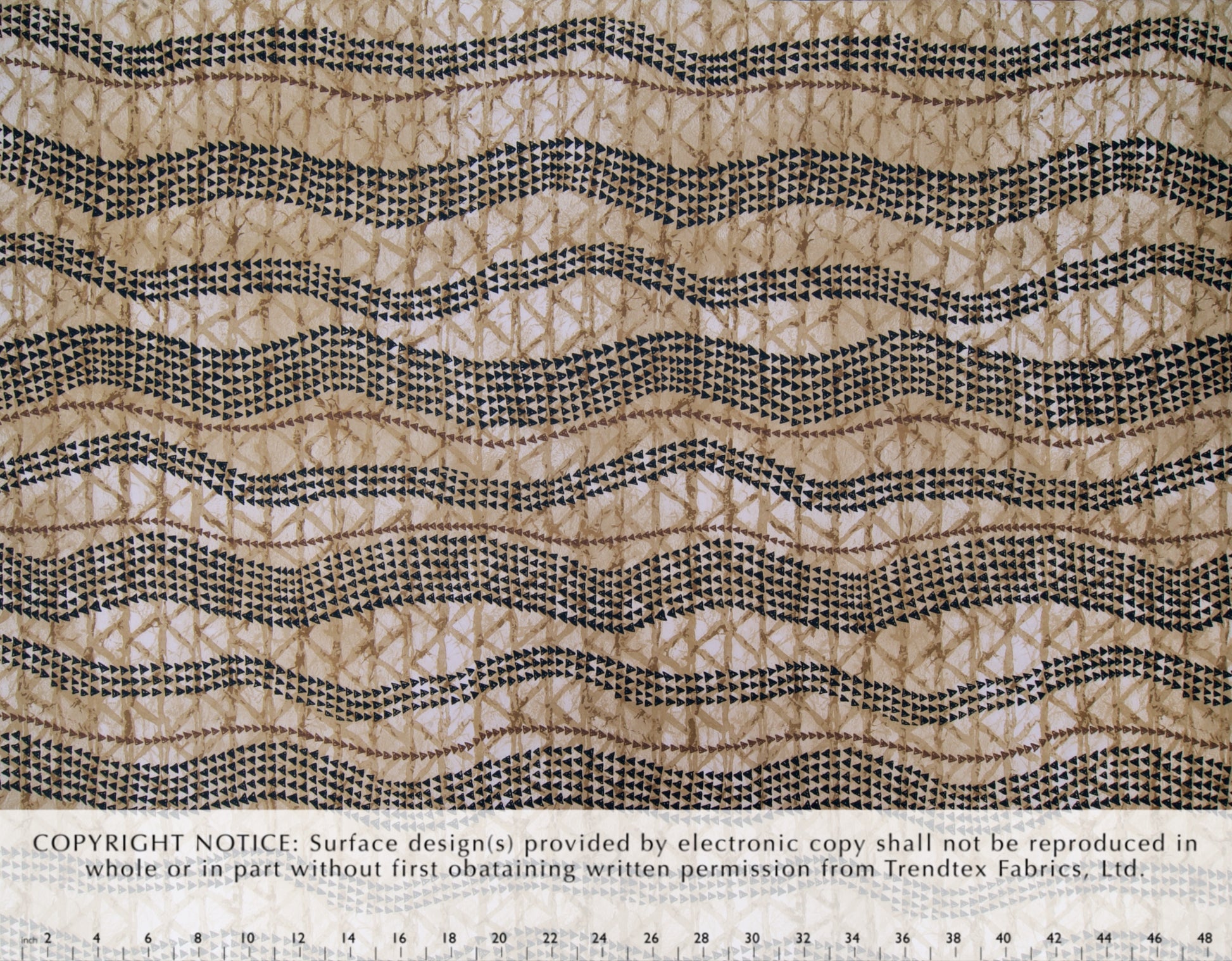100% Cotton Poplin, 44/45"Wide, All-Over. Stylized Ethnic Tattoo-Inspired Stripes on a Watercolor Background.