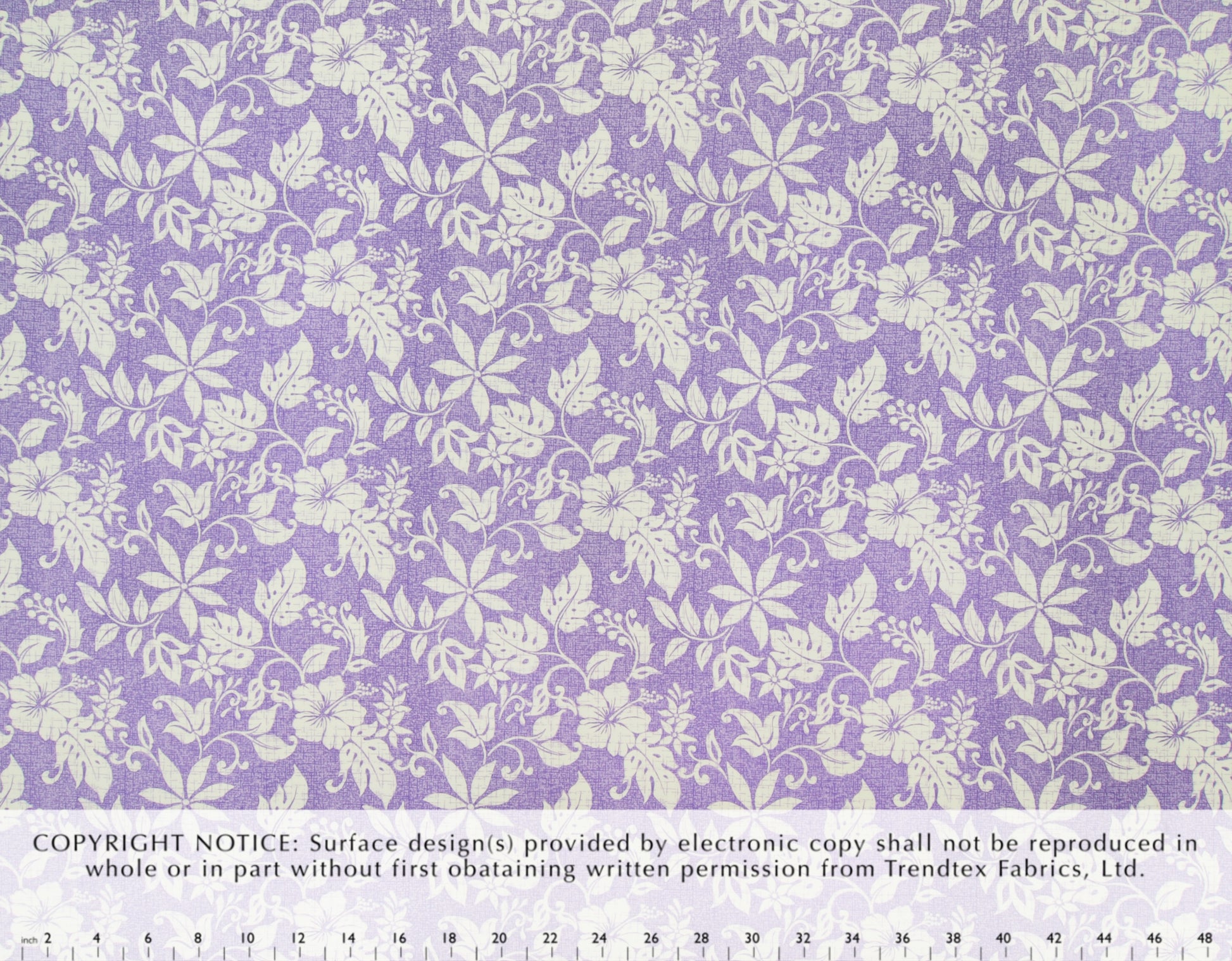 100% Cotton Poplin, 44/45"Wide, All-Over. Stylized Hibiscus and Tropical Flower Pareau on a Textured Background.