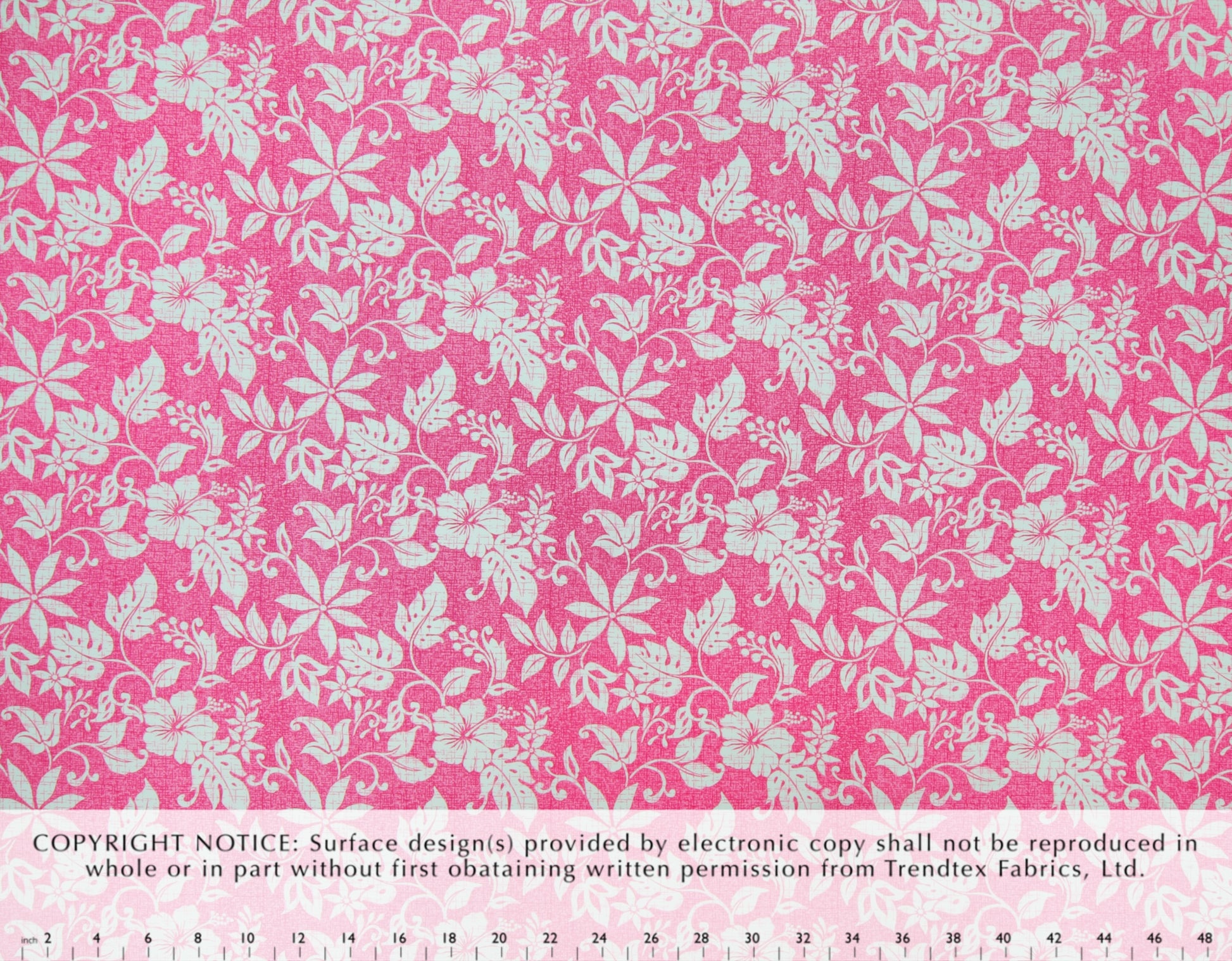 100% Cotton Poplin, 44/45"Wide, All-Over. Stylized Hibiscus and Tropical Flower Pareau on a Textured Background.