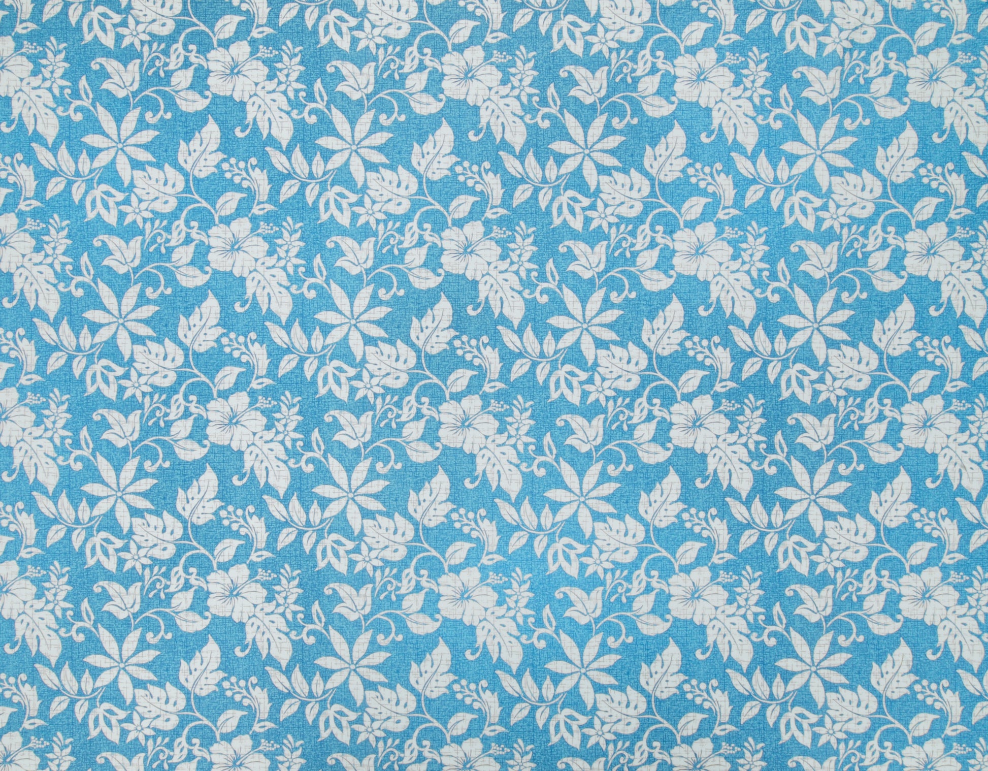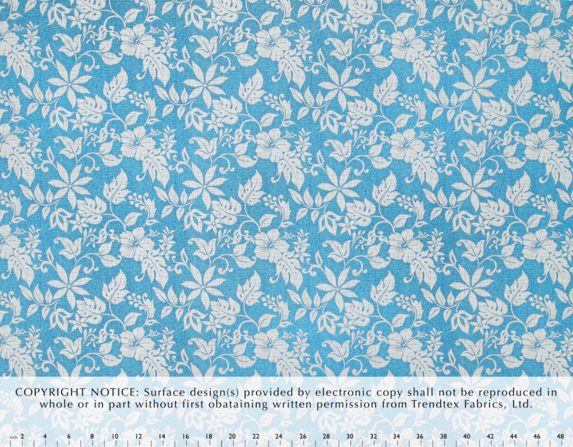 100% Cotton Poplin, 44/45"Wide, All-Over. Stylized Hibiscus and Tropical Flower Pareau on a Textured Background.