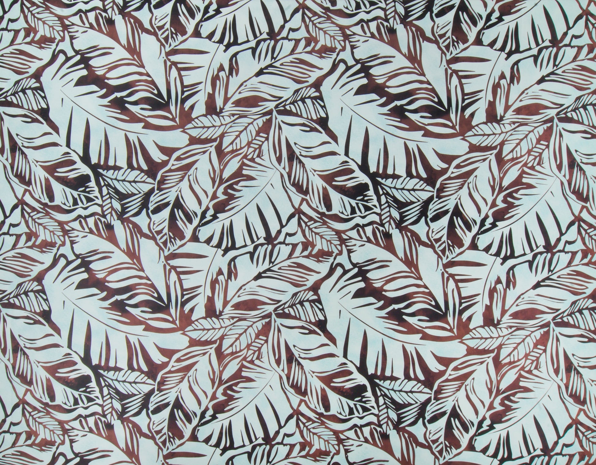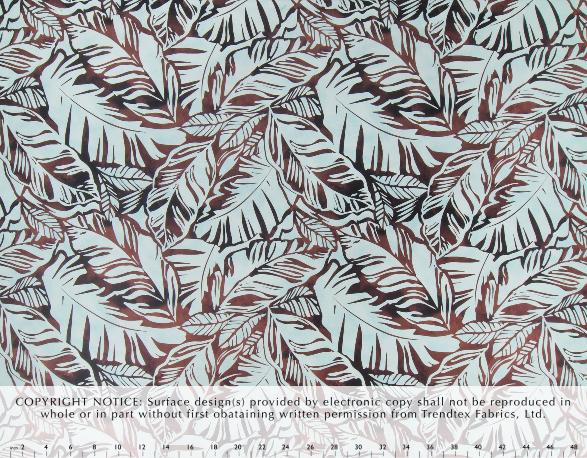 100% Cotton Poplin, 44/45"Wide, All-Over. Stylized Tropical Leaves on a Tonal Ombre Background.