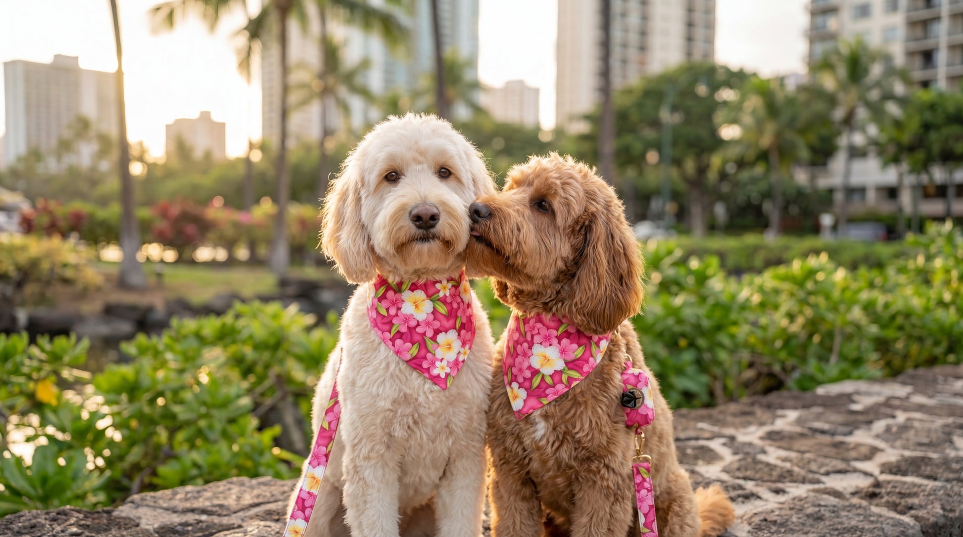 100% Cotton Poplin, 44/45" Wide, All-Over. Clusters of Plumeria and Hibiscus Flowers over a Watercolor Background.