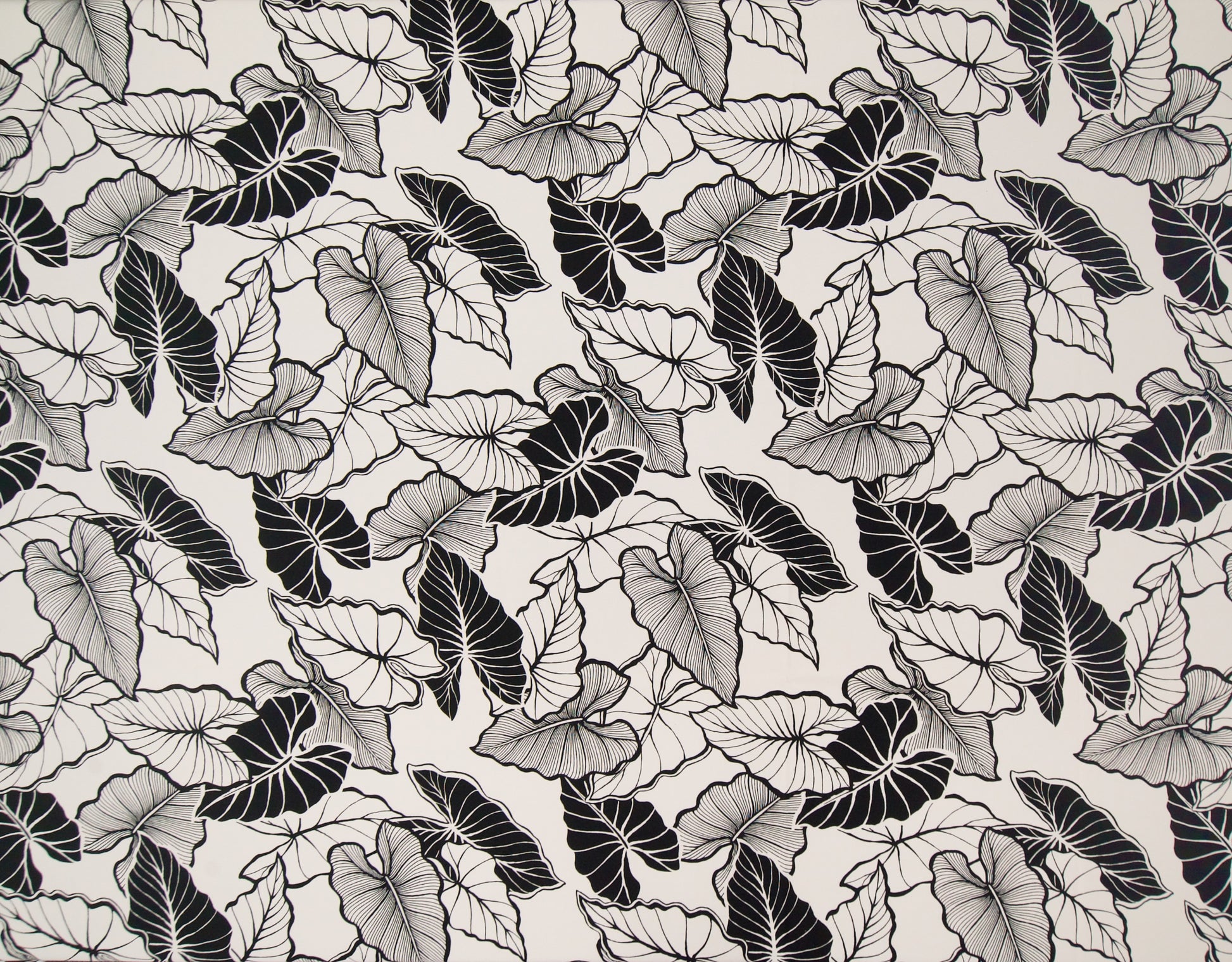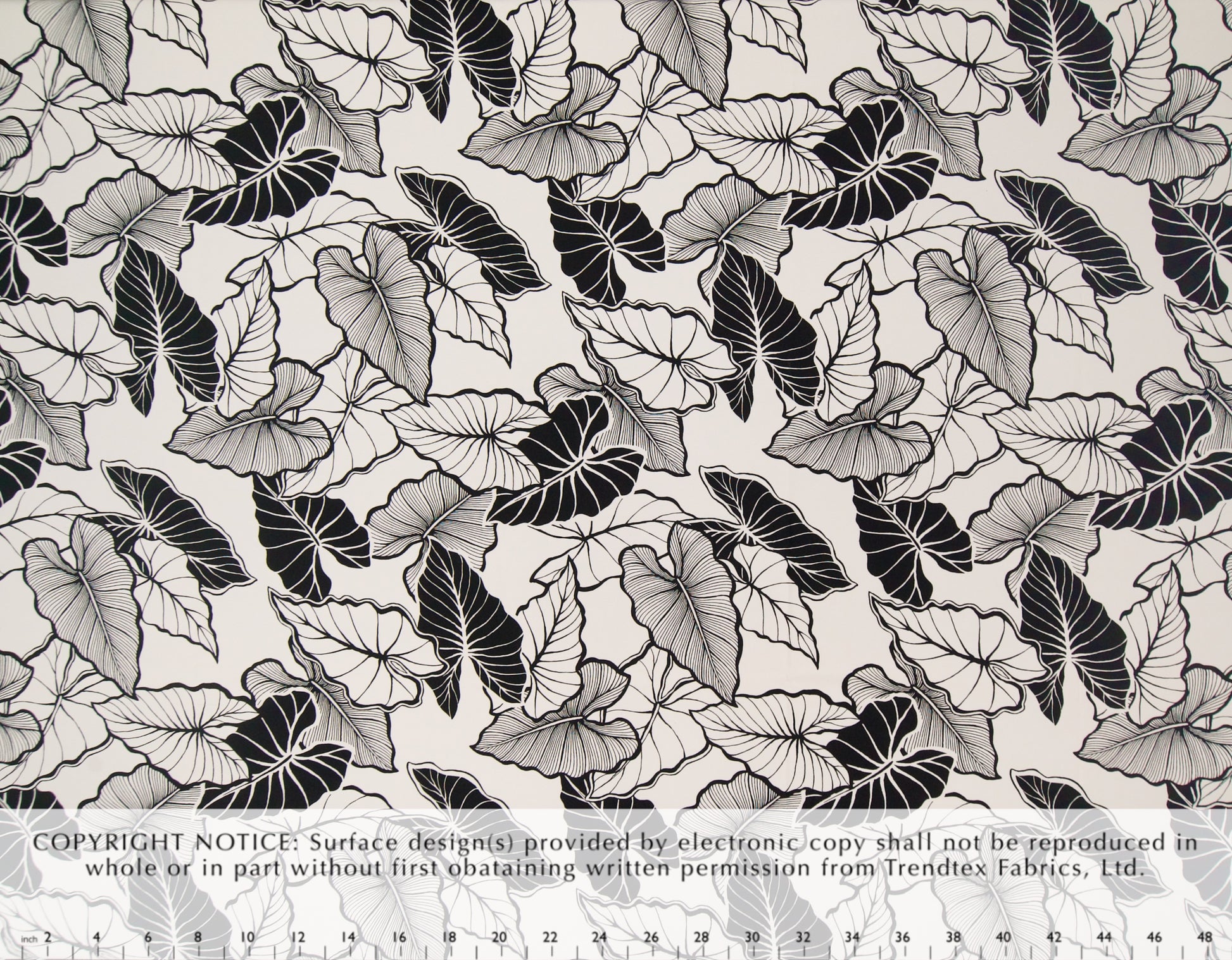 100% Cotton Canvas, 44/45" Wide, All-Over. Stylized Tropical Taro Leaves.