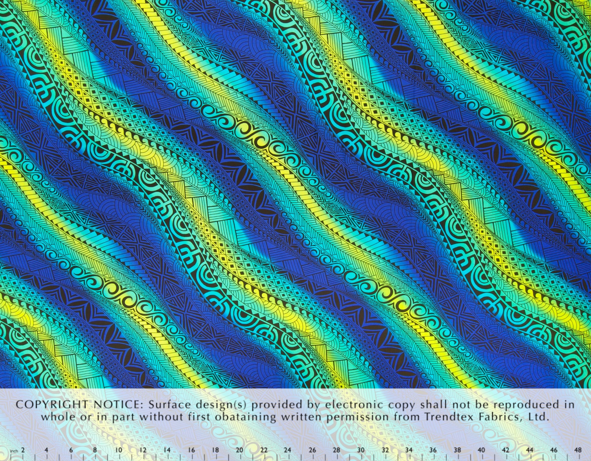 100% Cotton Poplin, 44/45"Wide, All-Over. Ethnic Tattoo Inspired Ombre Waves.