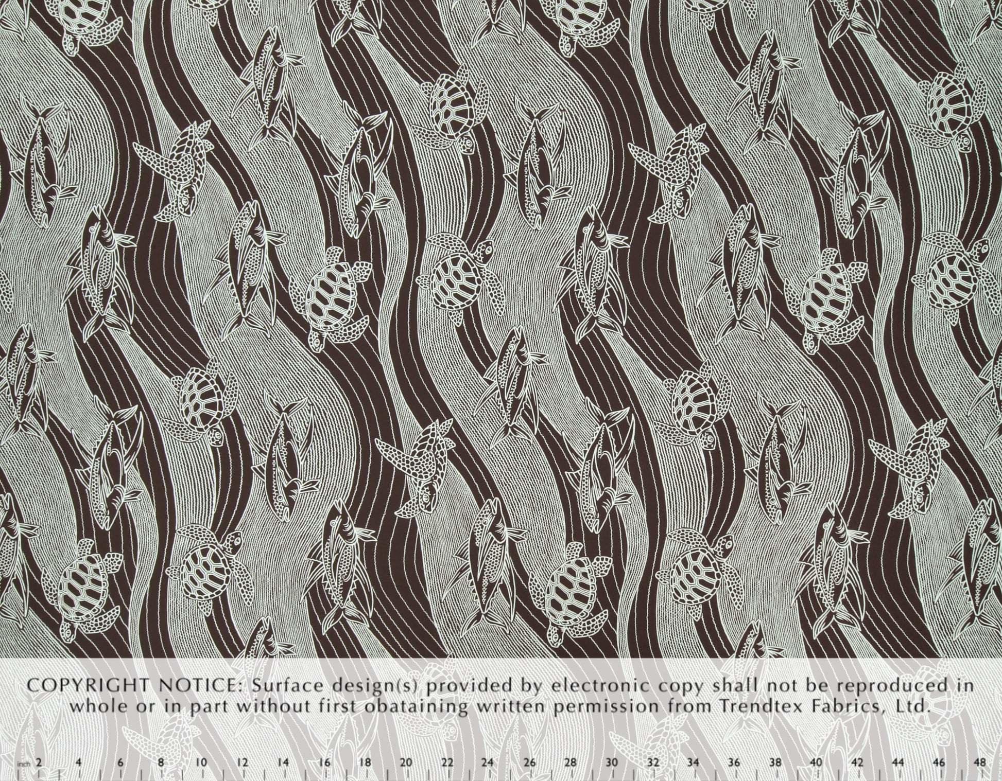 100% Cotton Poplin, 44/45"Wide, One-Way. Stylized Ocean Fish and Sea Turtles (Honu).