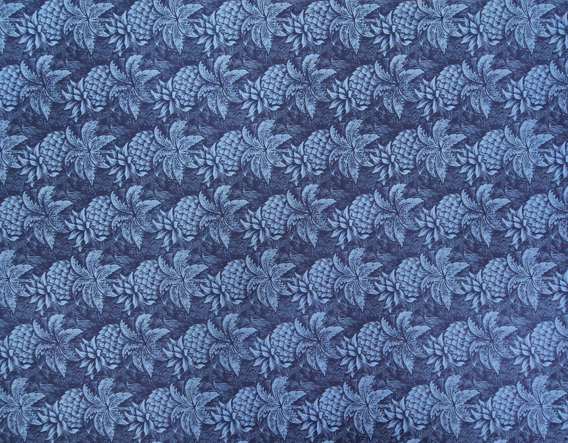 100% Cotton Poplin, 44/45"Wide, One-Way. Etched Pineapples and Palm Trees on a Textured Background.