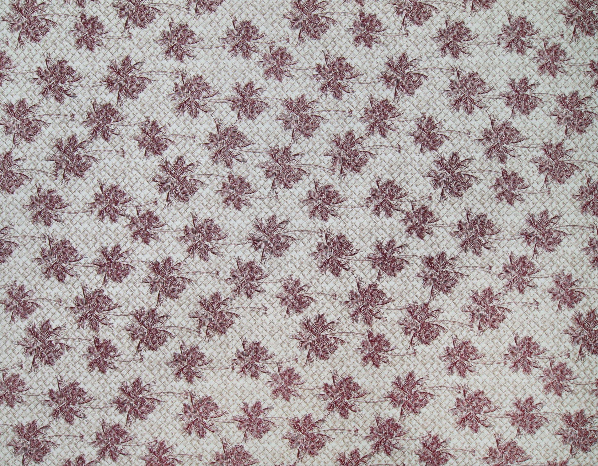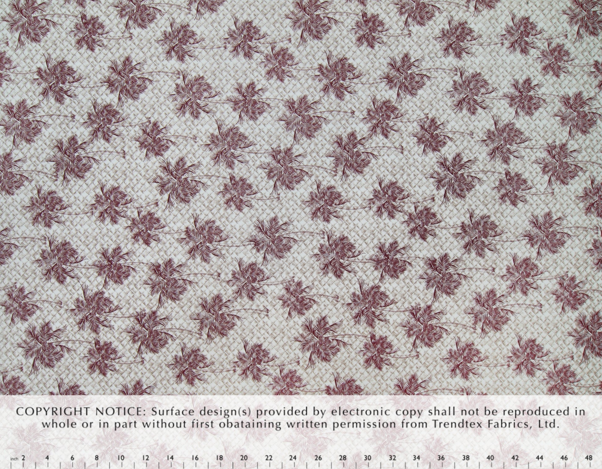 100% Cotton Poplin, 44/45"Wide, One-Way. Stylized Palm Trees on a Woven Lauhala Background.