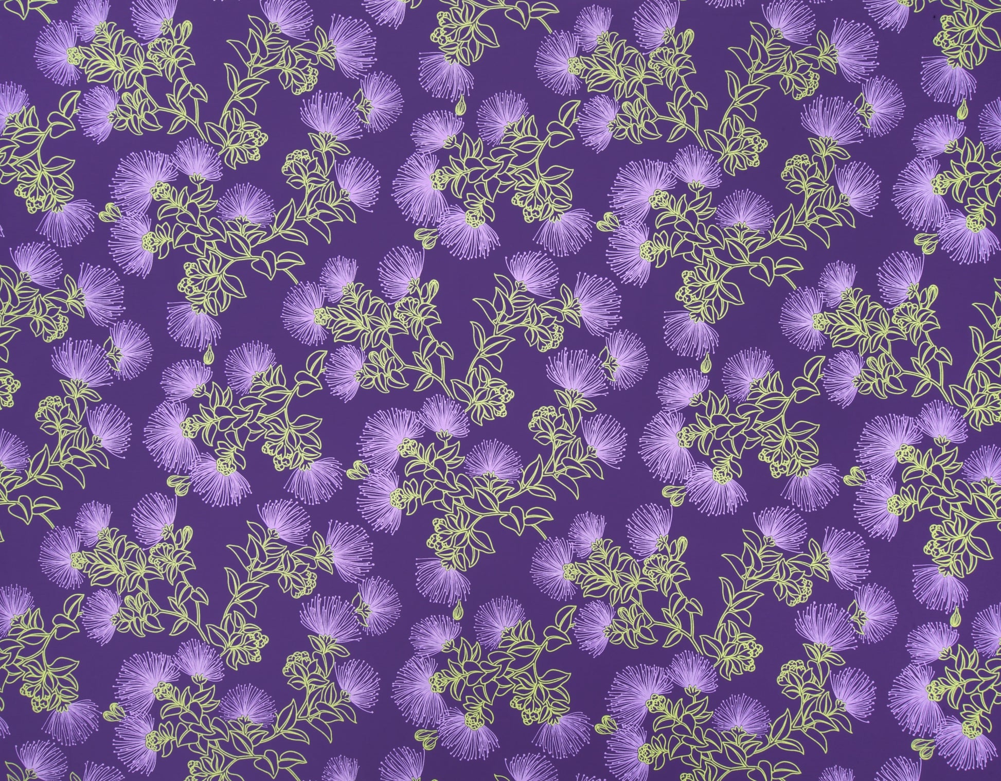 65% Polyester/35% Cotton Poplin, 44/45" Wide, All-Over. Line Technique Tropical Ohia Lehua Flowers.
