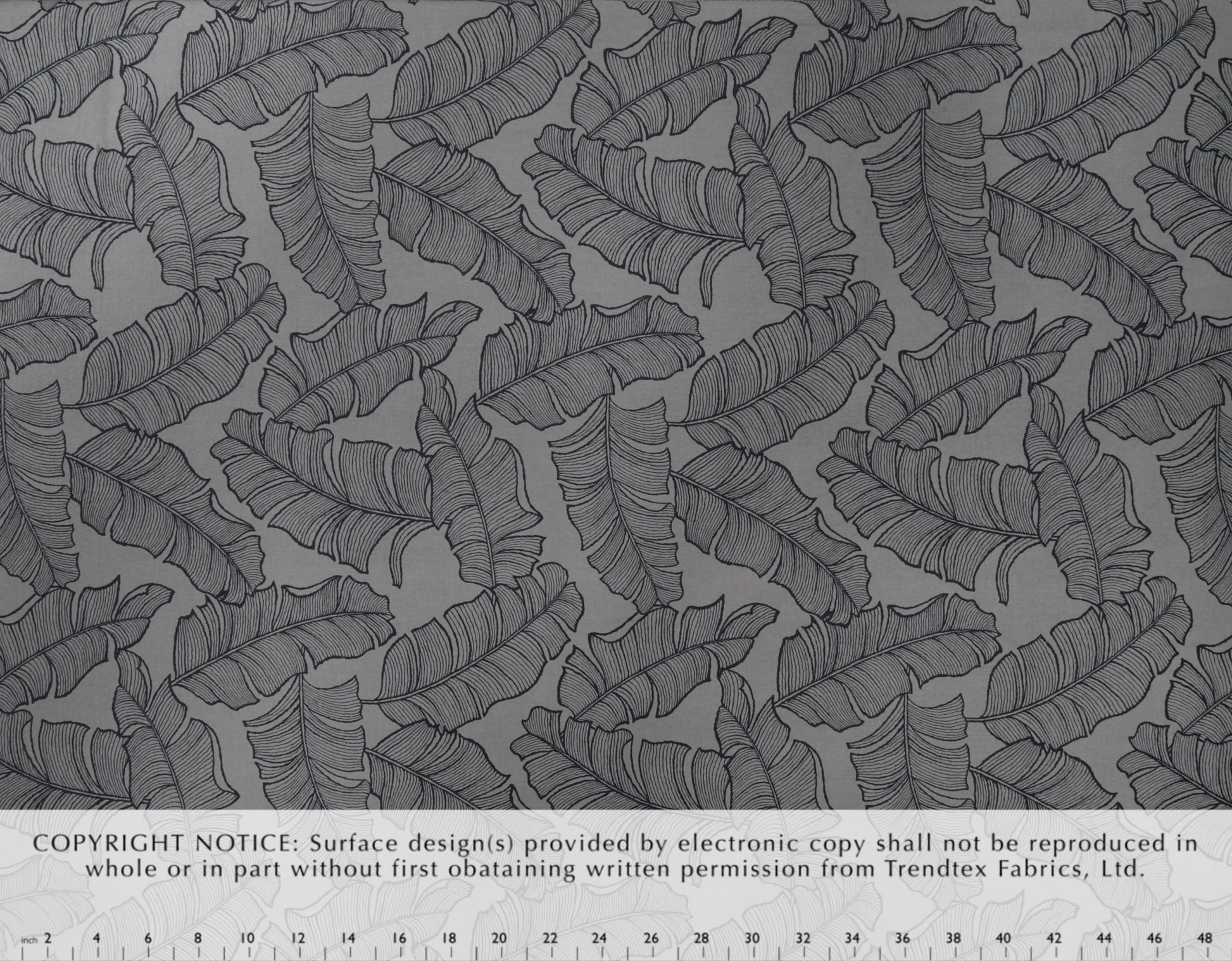 100% Cotton Poplin, 44/45"Wide, All-Over. Stylized Line Technique Tropical Banana Leaves.