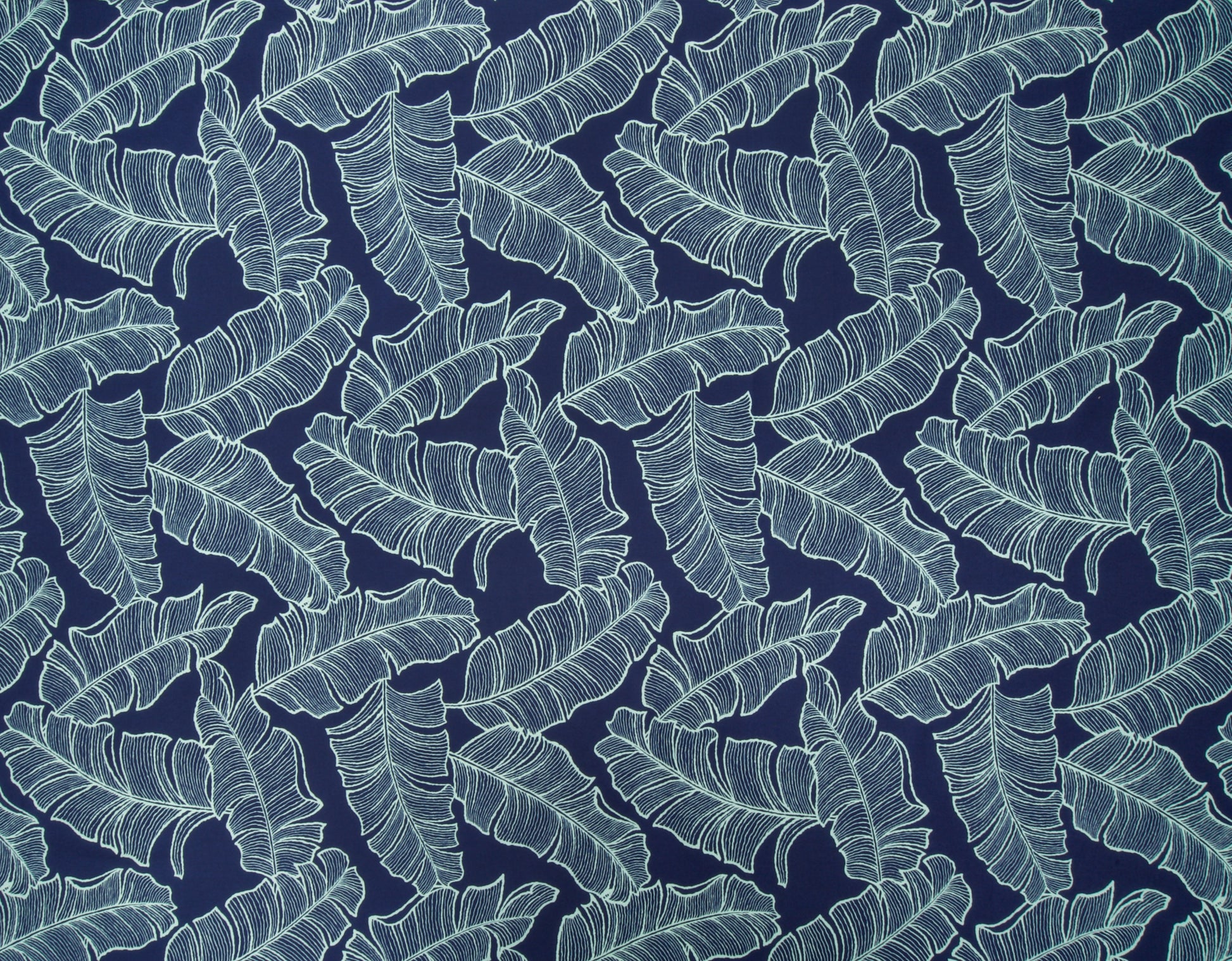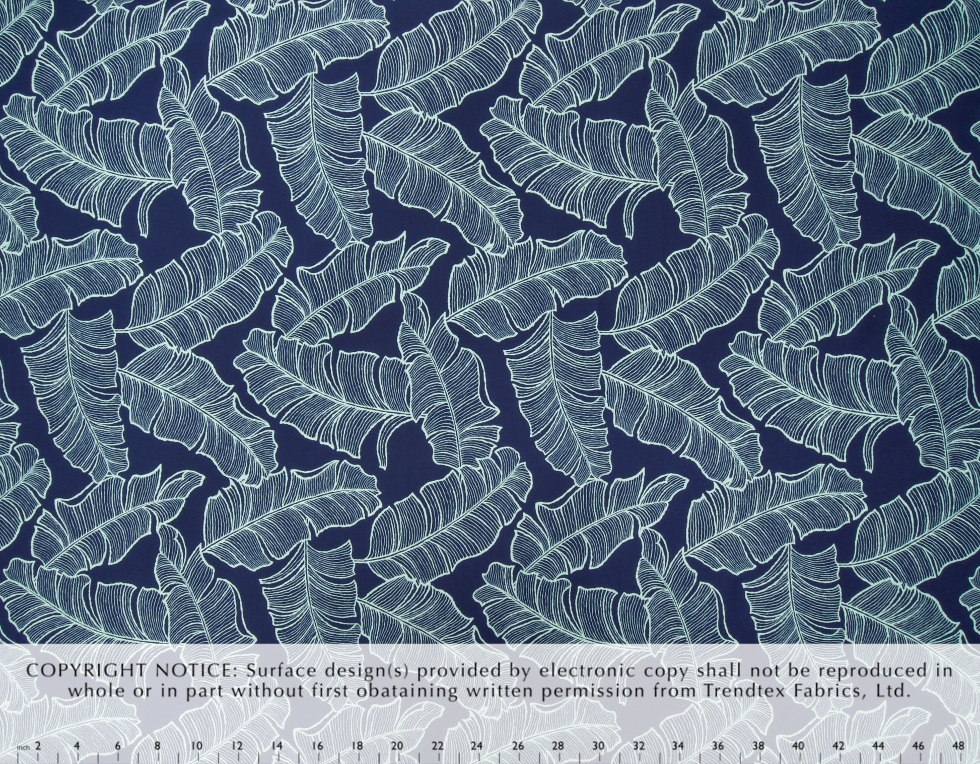 100% Cotton Poplin, 44/45"Wide, All-Over. Stylized Line Technique Tropical Banana Leaves.