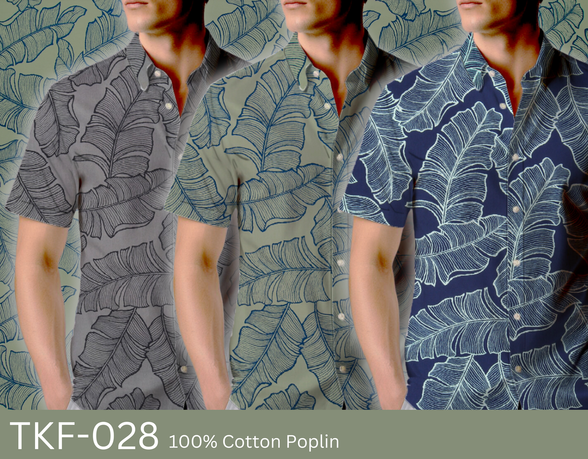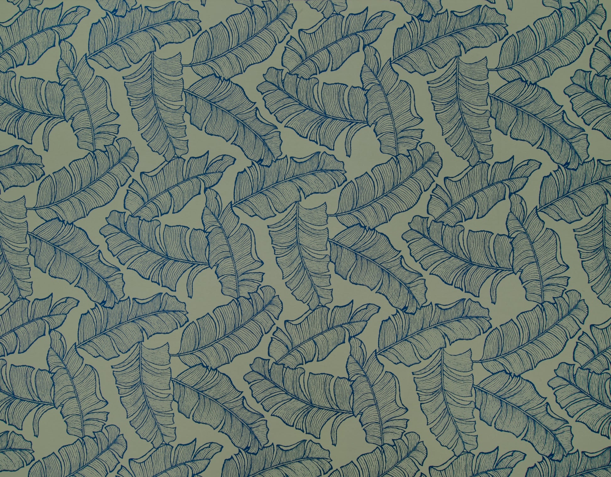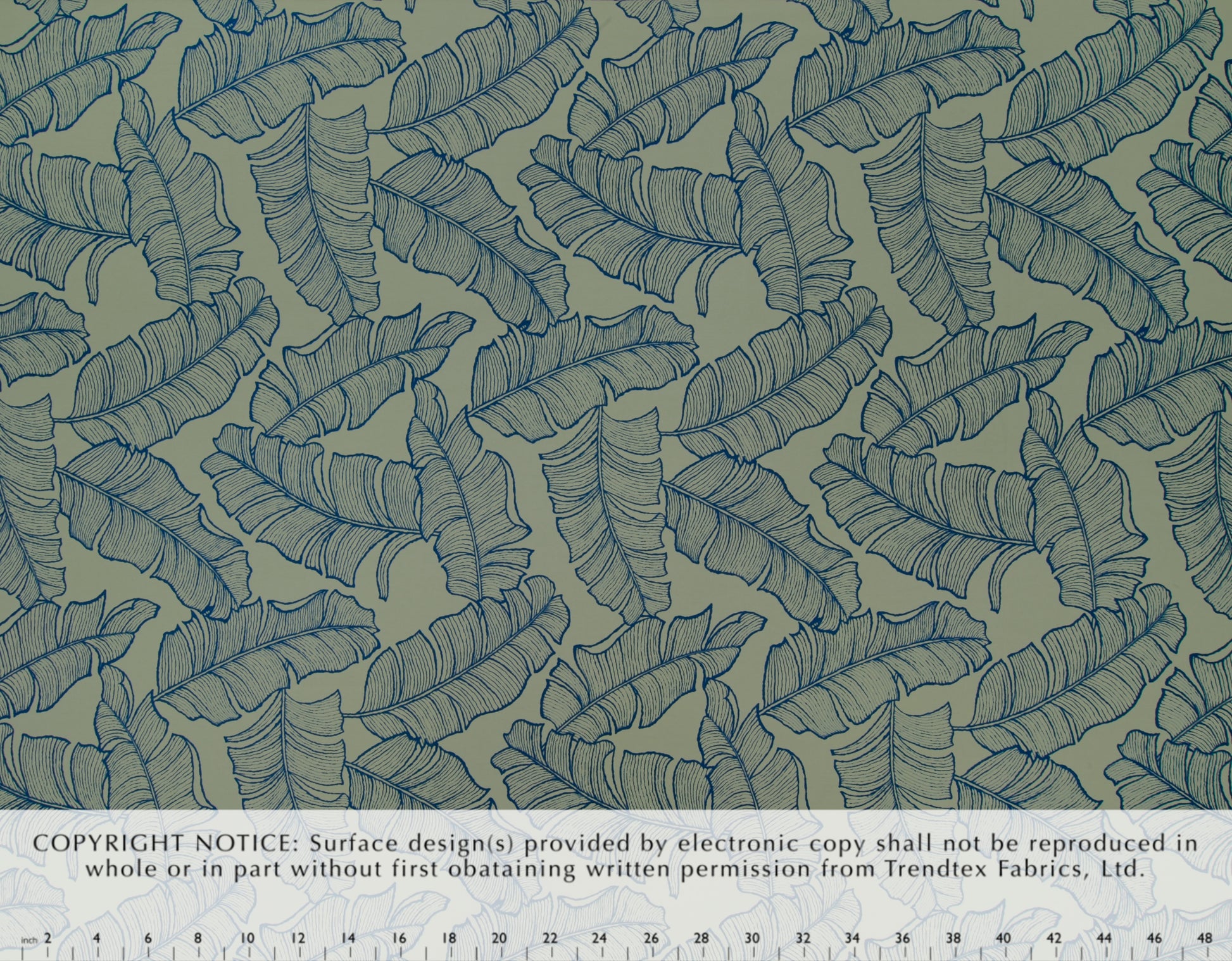 100% Cotton Poplin, 44/45"Wide, All-Over. Stylized Line Technique Tropical Banana Leaves.