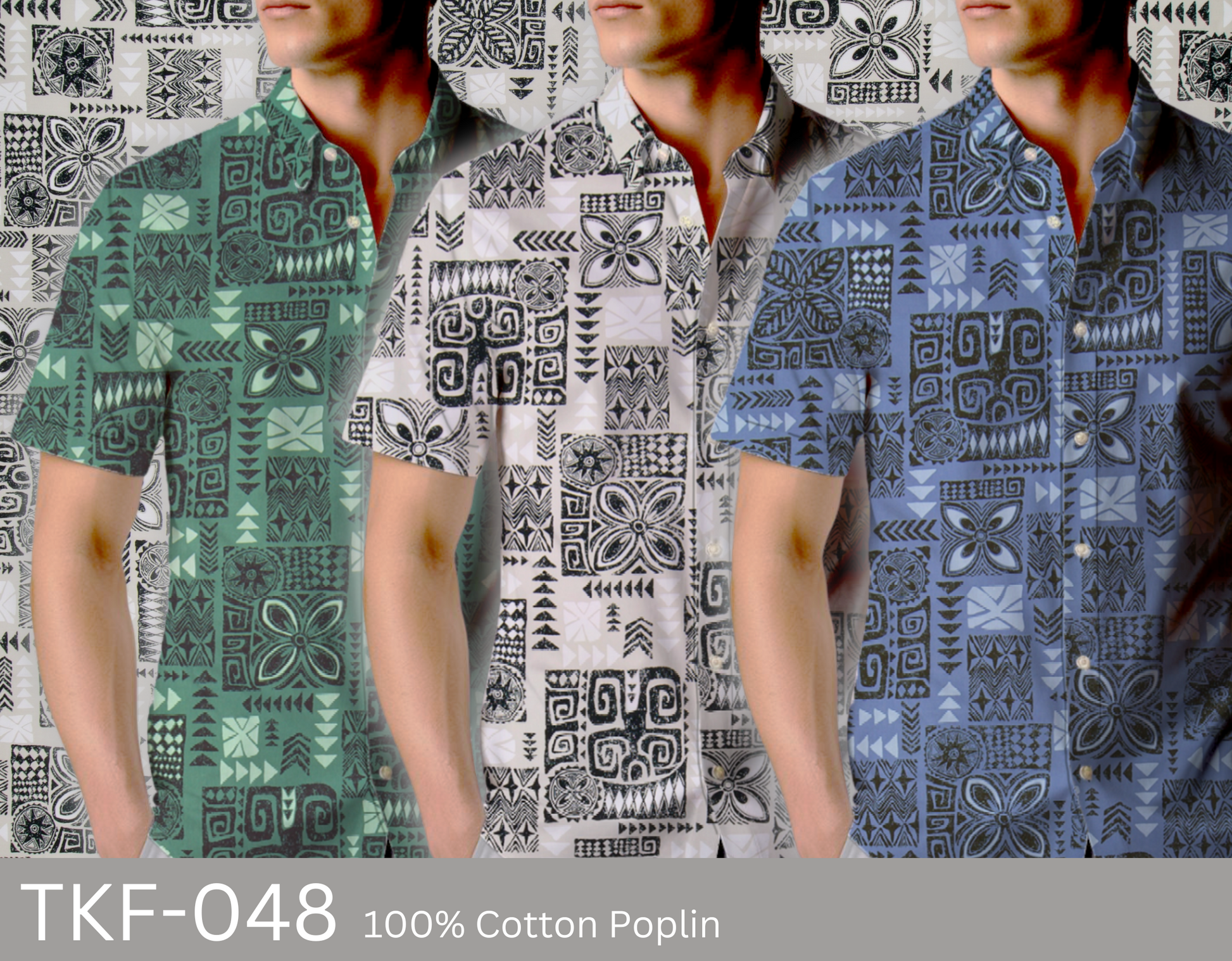 100% Cotton Poplin, 44/45"Wide, All-Over. Stylized Block Print Tapa Patterns.