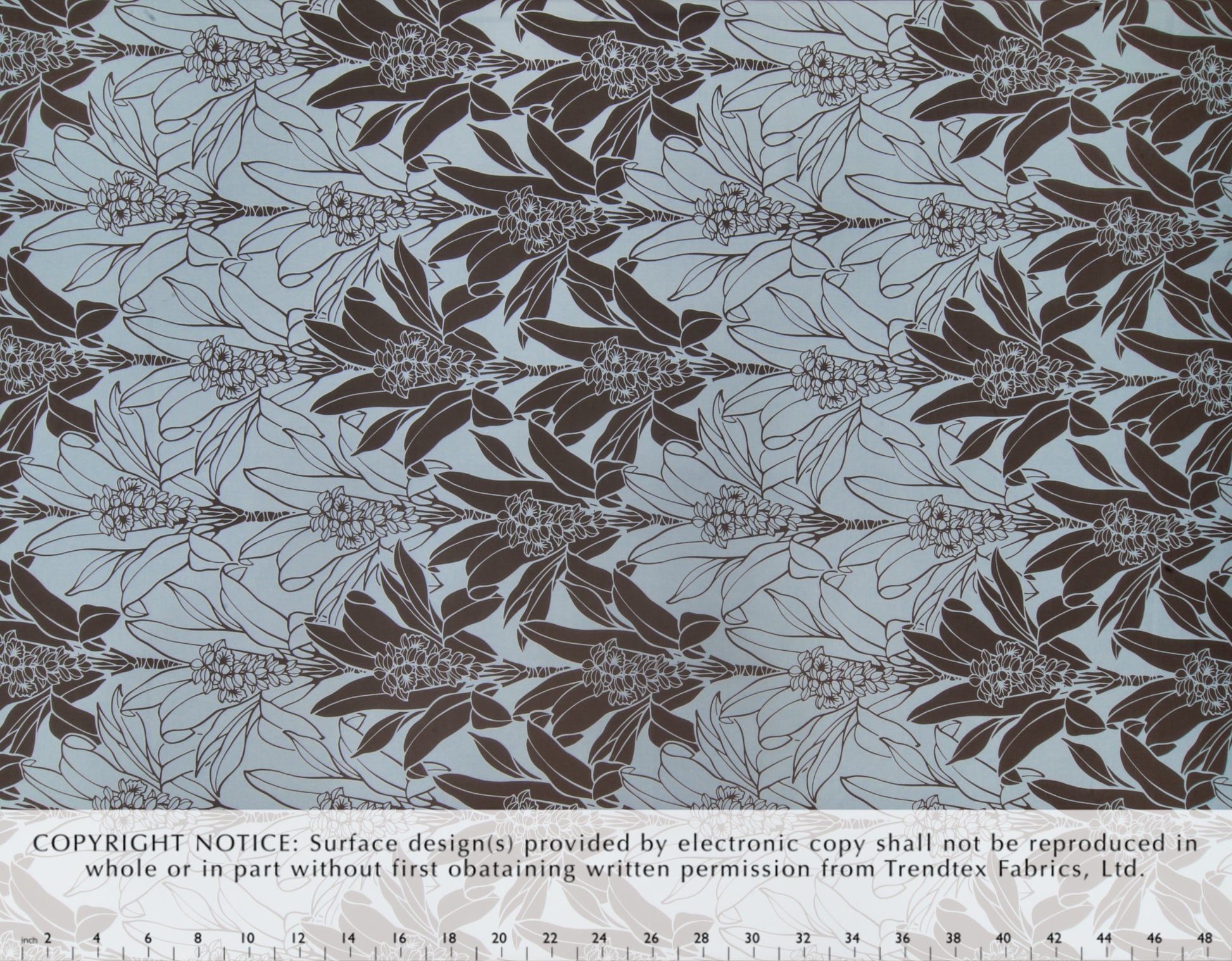 100% Cotton Poplin, 44/45"Wide, One-Way. Stylized Ti Leaf Plants with Shell Ginger.
