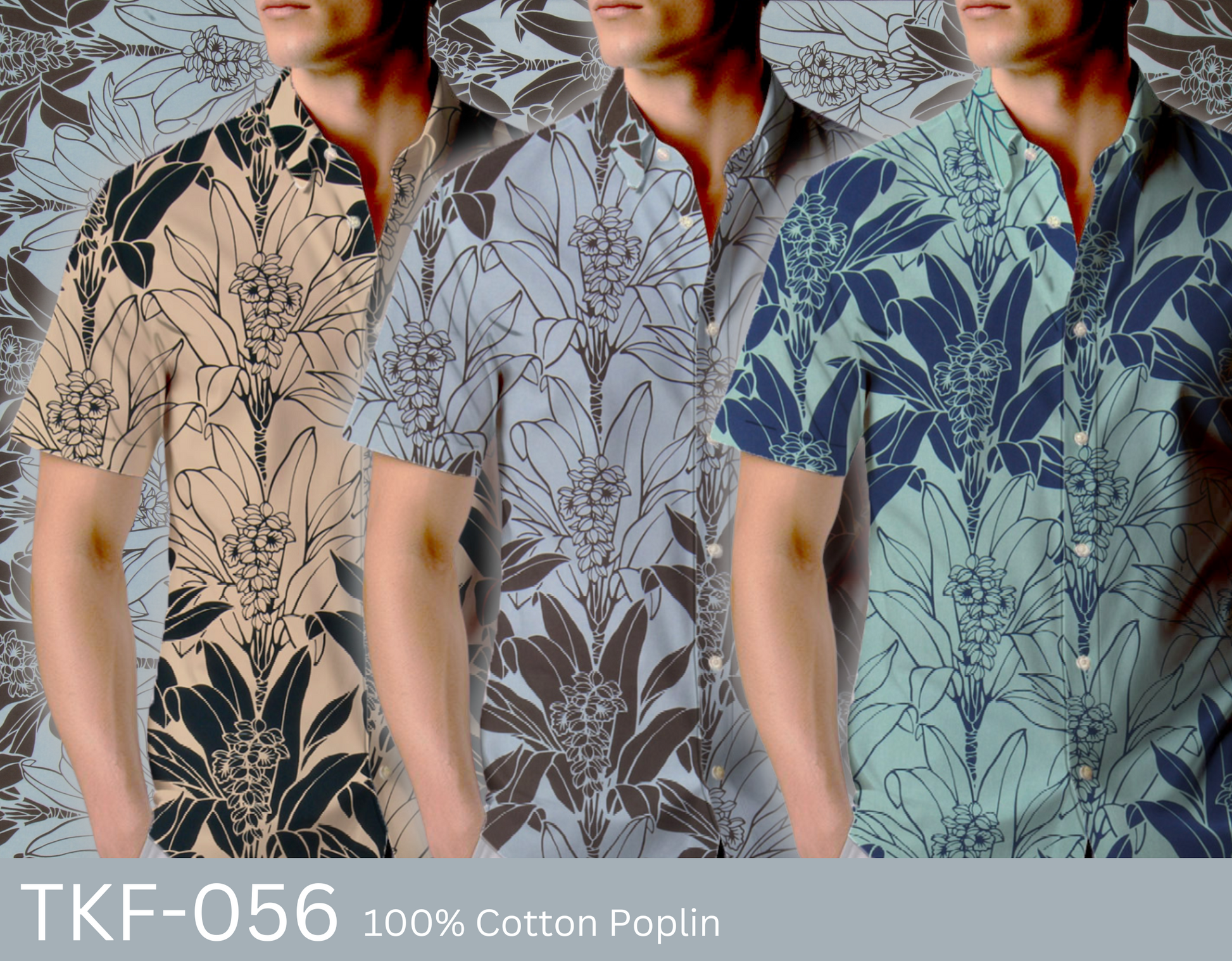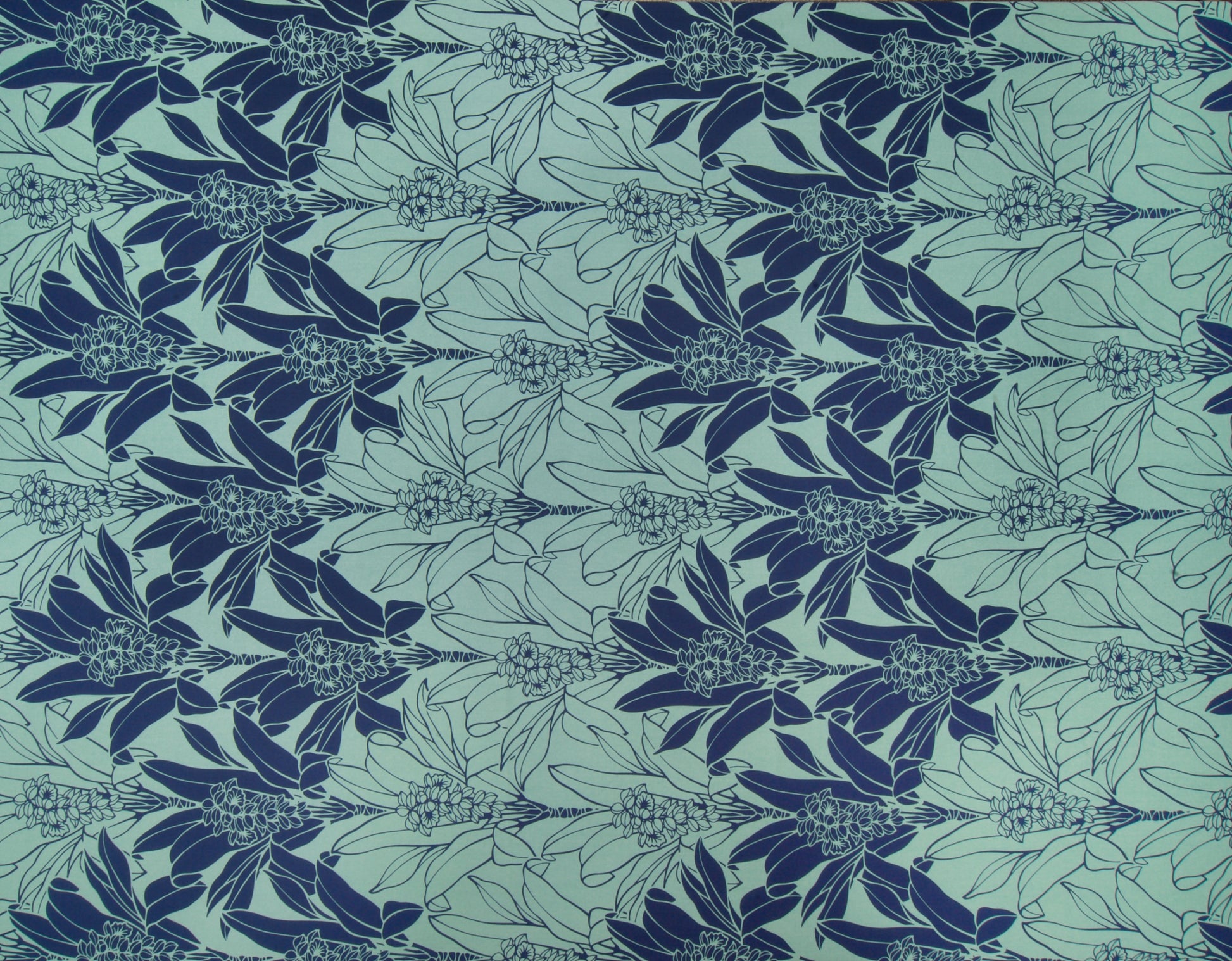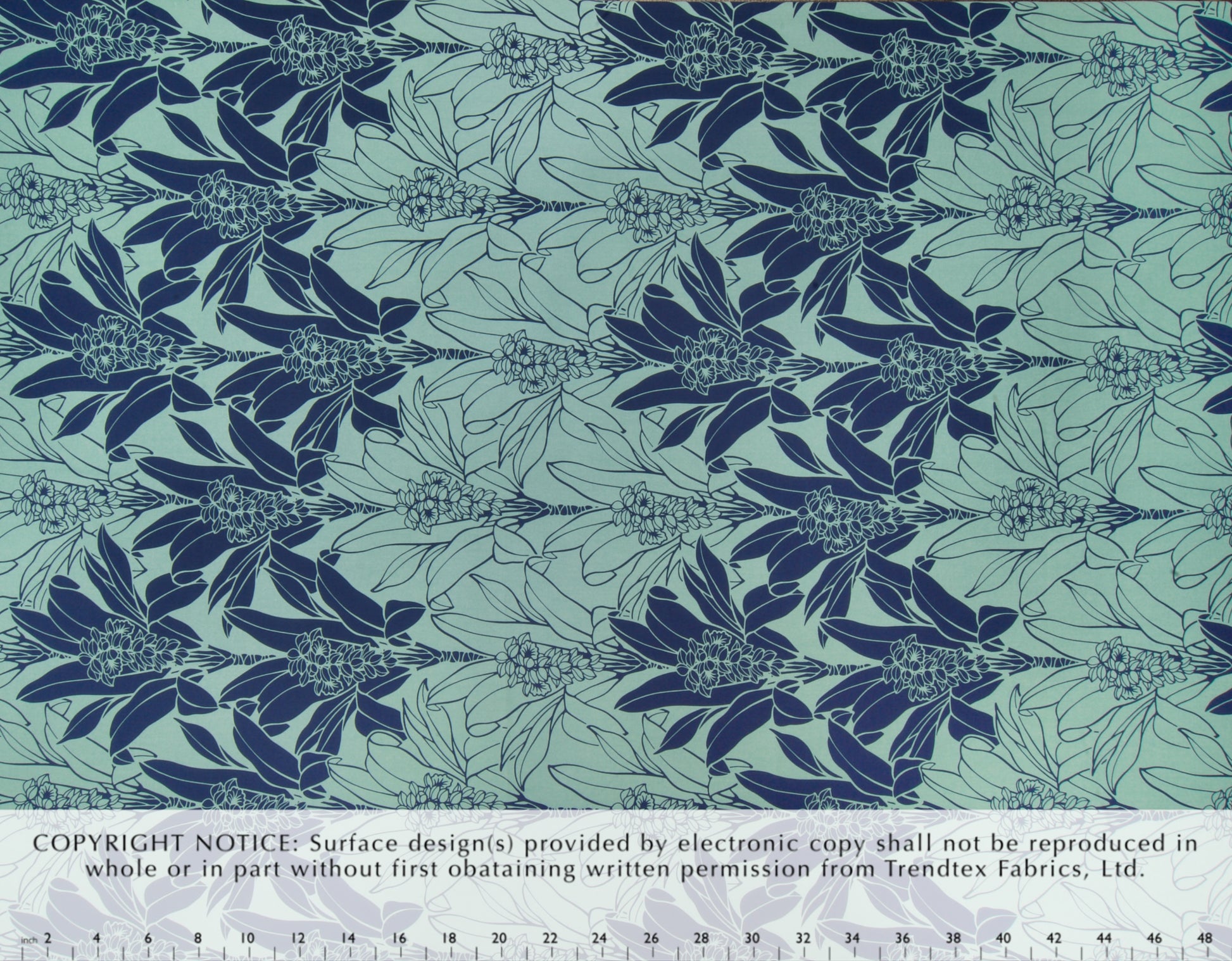 100% Cotton Poplin, 44/45"Wide, One-Way. Stylized Ti Leaf Plants with Shell Ginger.