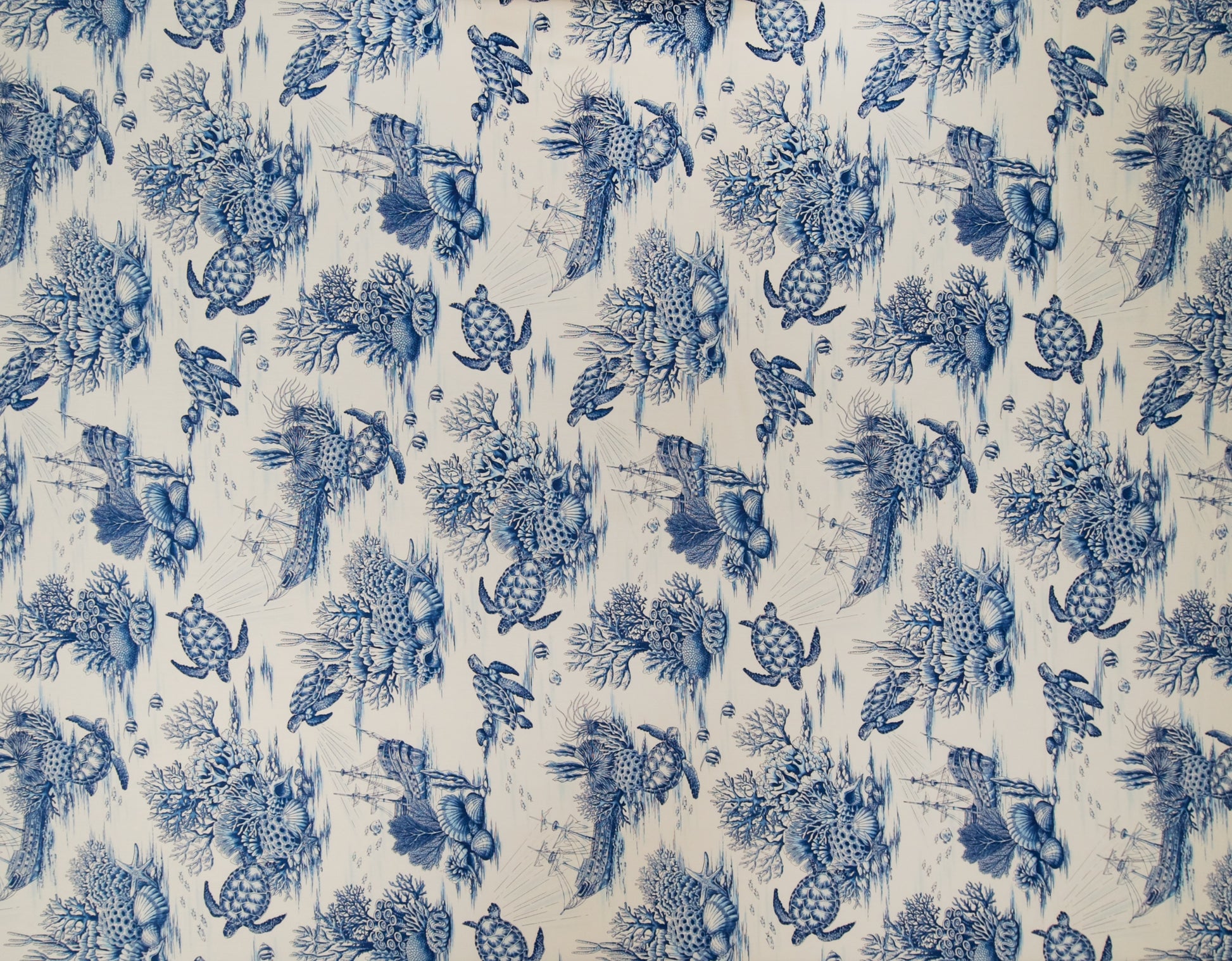 100% Cotton Poplin, 44/45"Wide, One-Way. Toile Sea Turtle and Coral Reef Scenic with Ship.