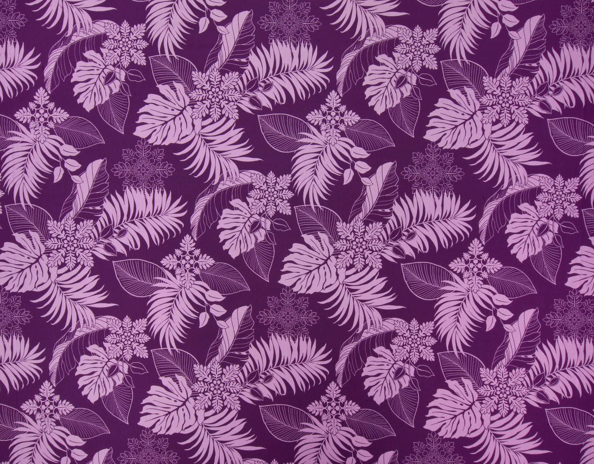 100% Cotton Poplin, 44/45"Wide, All-Over. Hawaiian Quilting Motifs Clustered with Tropical Leaves.