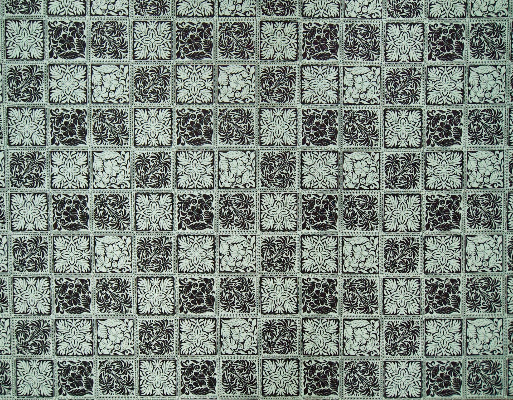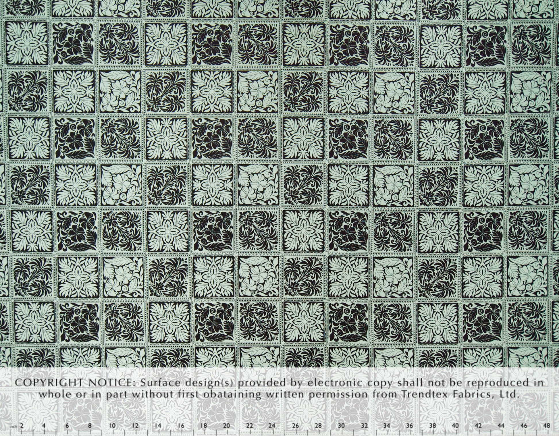 100% Cotton Poplin, 44/45"Wide, All-Over. Modern Stylized Tropical Botanical-Inspired Quilting Squares.