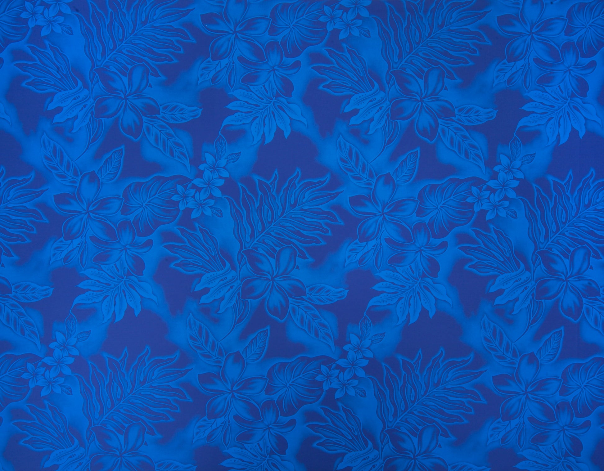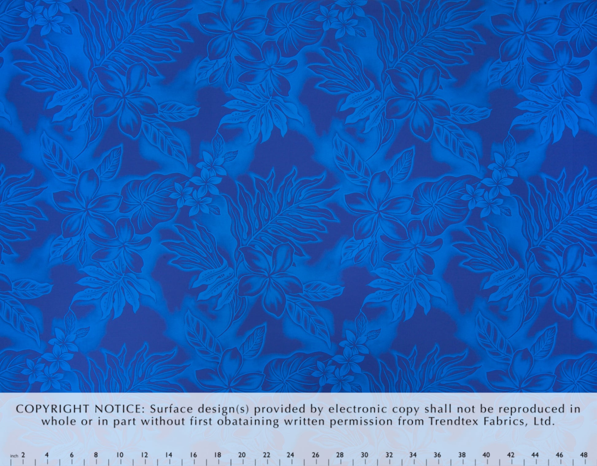 65% Polyester/35% Cotton Poplin, 44/45" Wide, All-Over. Tonal Stylized Plumeria Flowers and Tropical Leaves.