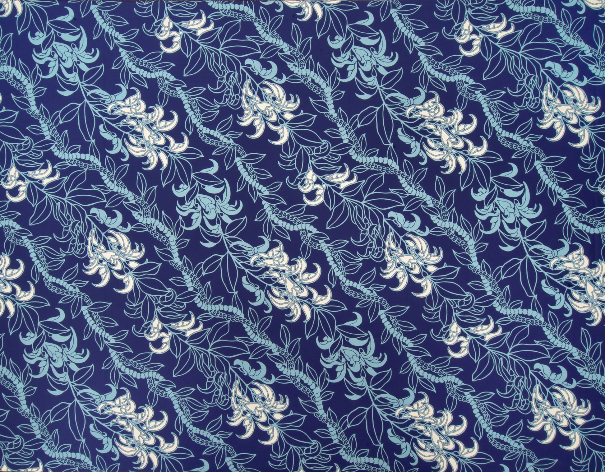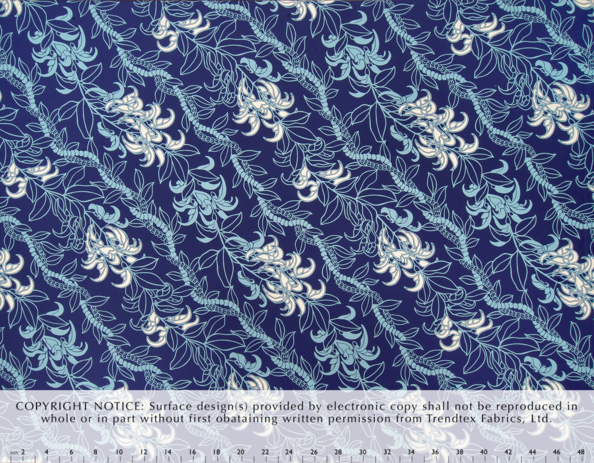 65% Polyester/35% Cotton Poplin, 44/45" Wide, All-Over. Jade Vine and Pikake Flower Lei.