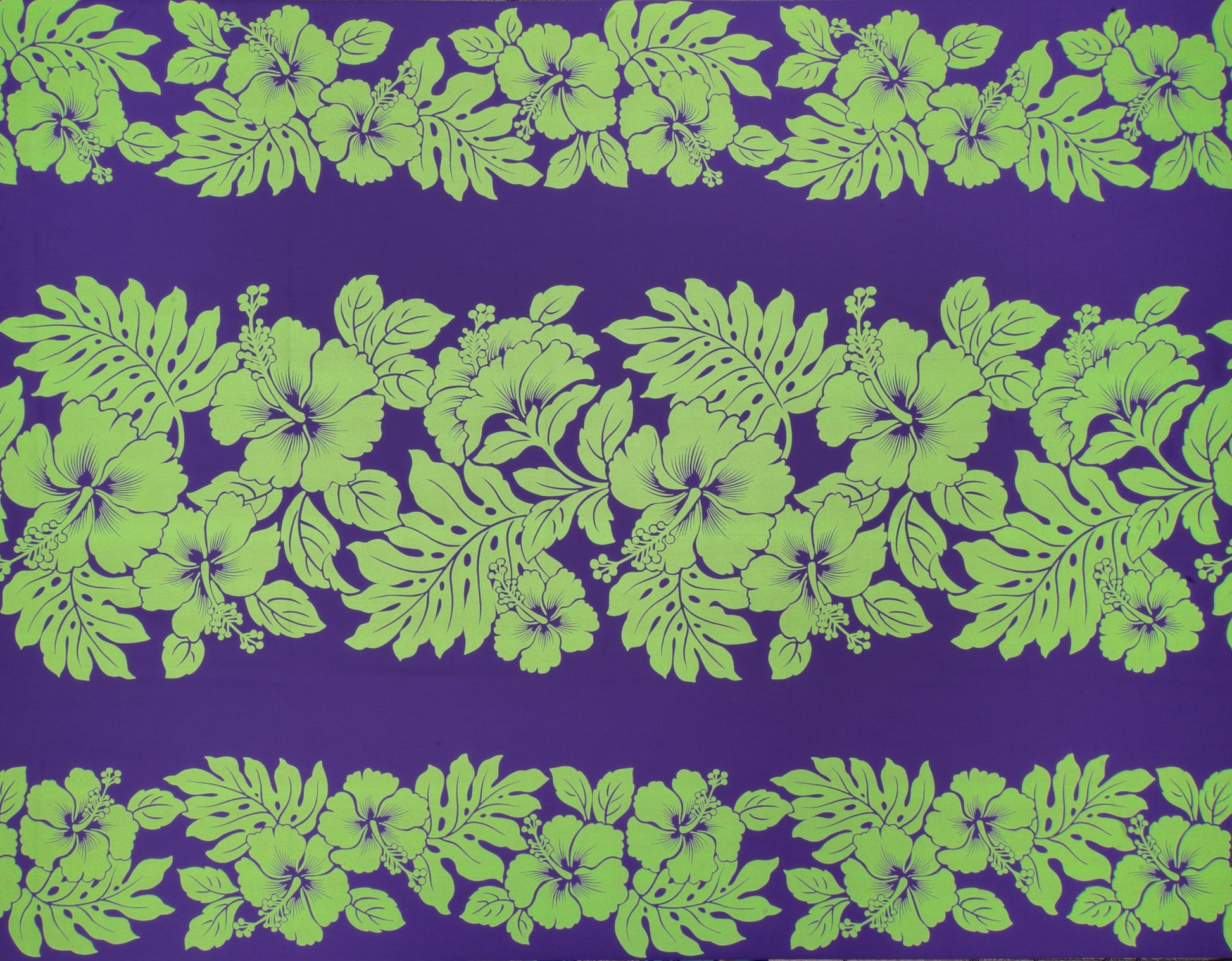 65% Polyester/35% Cotton Poplin, 44/45" Wide, Border Print. Borders of Stylized Hibiscus Flowers.