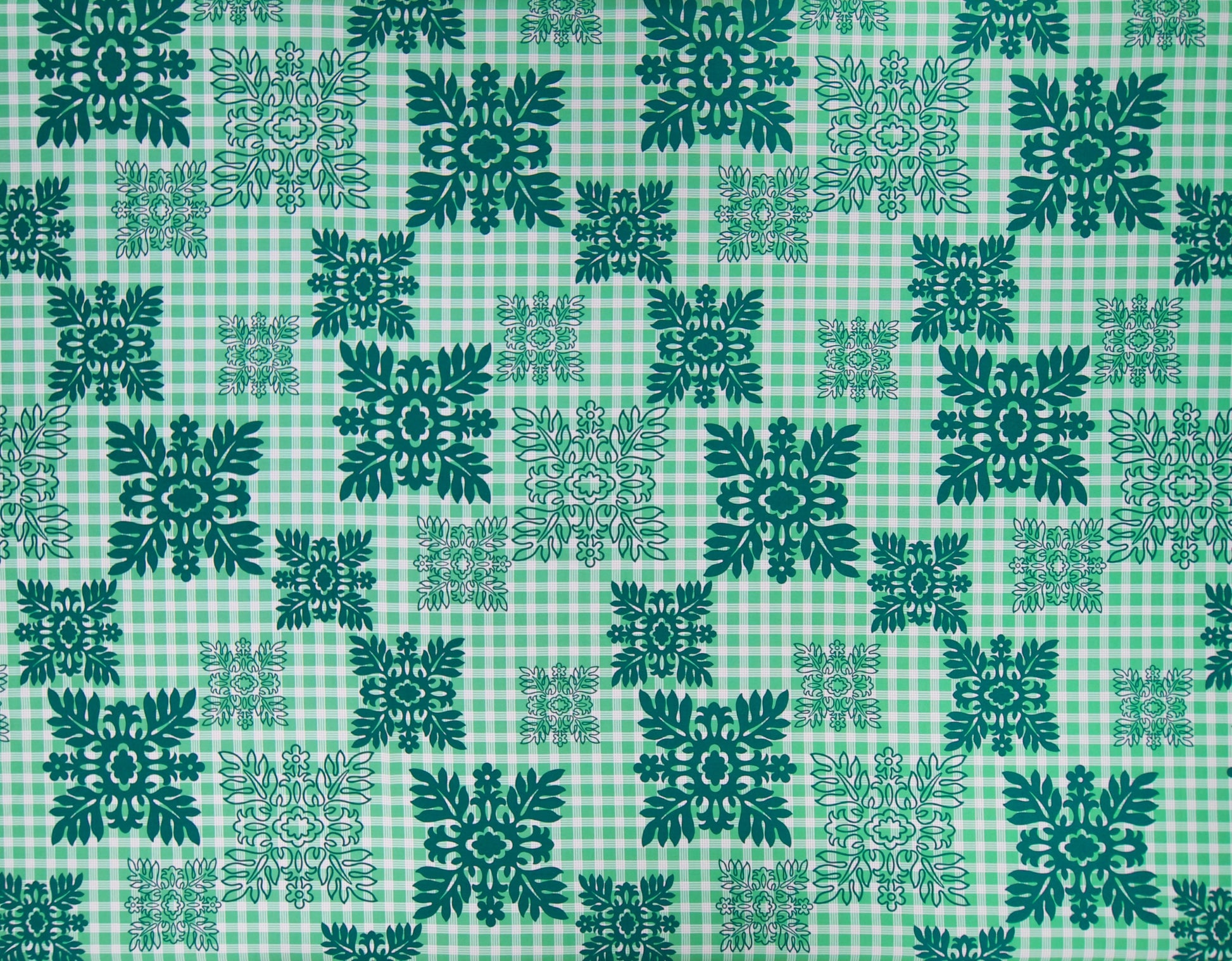 100% Cotton Poplin, 44/45"Wide, All-Over. Hawaiian Quilting Inspired Motifs on a Palaka Background.